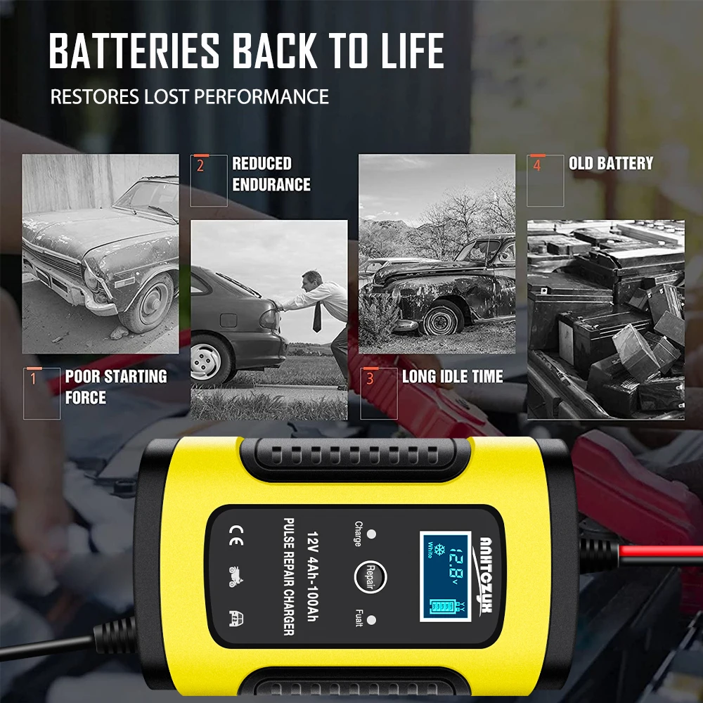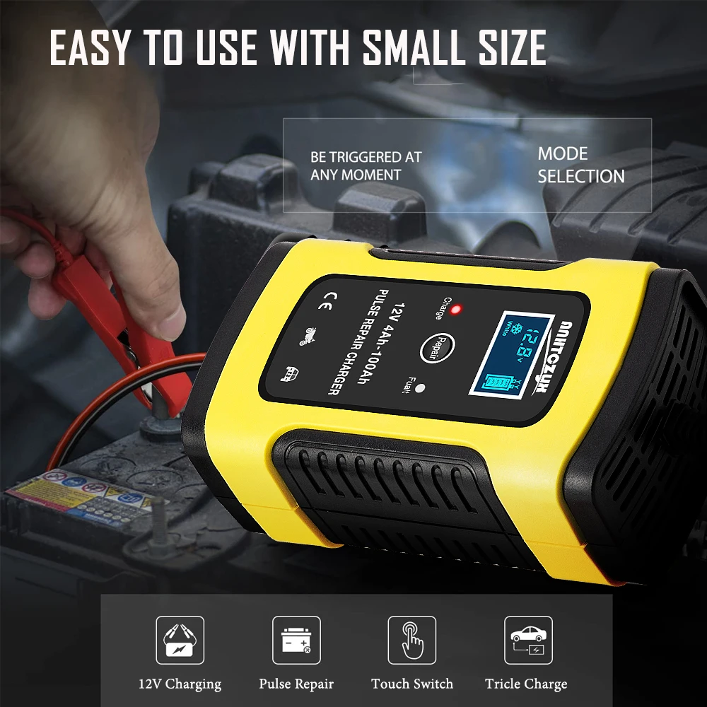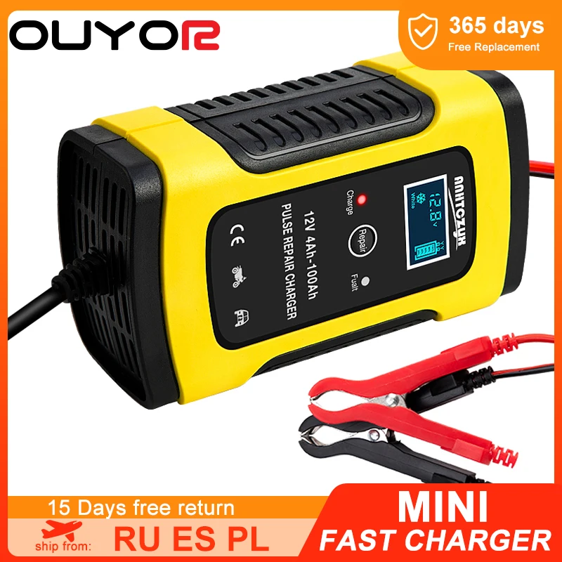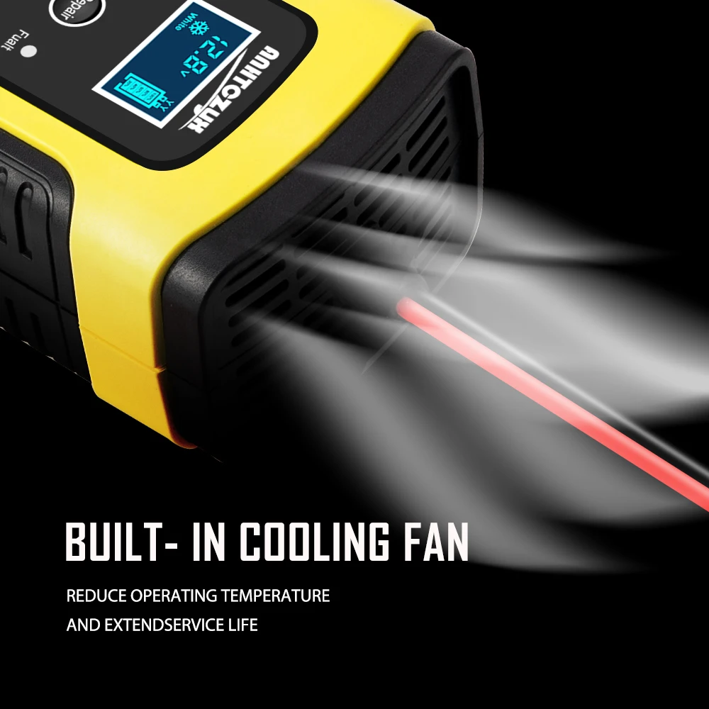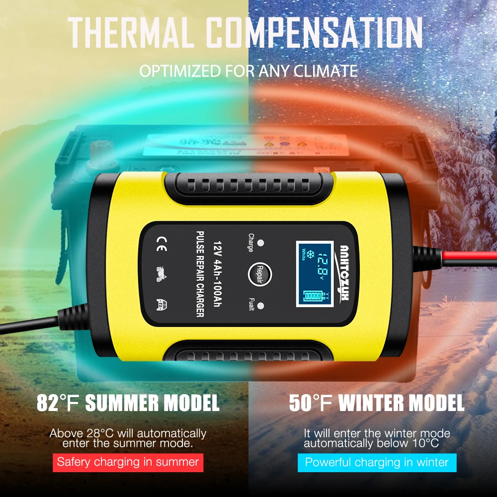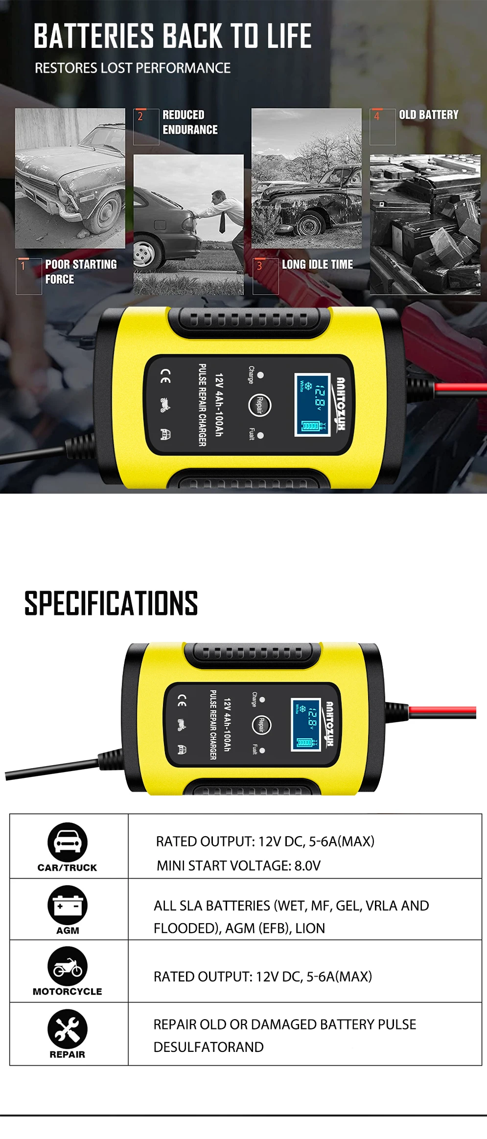 Автоматическое импульсное зарядное устройство, 12 В 6 А, для свинцово-кислотных аккумуляторов для автомобиля с цифровым ЖК-экраном