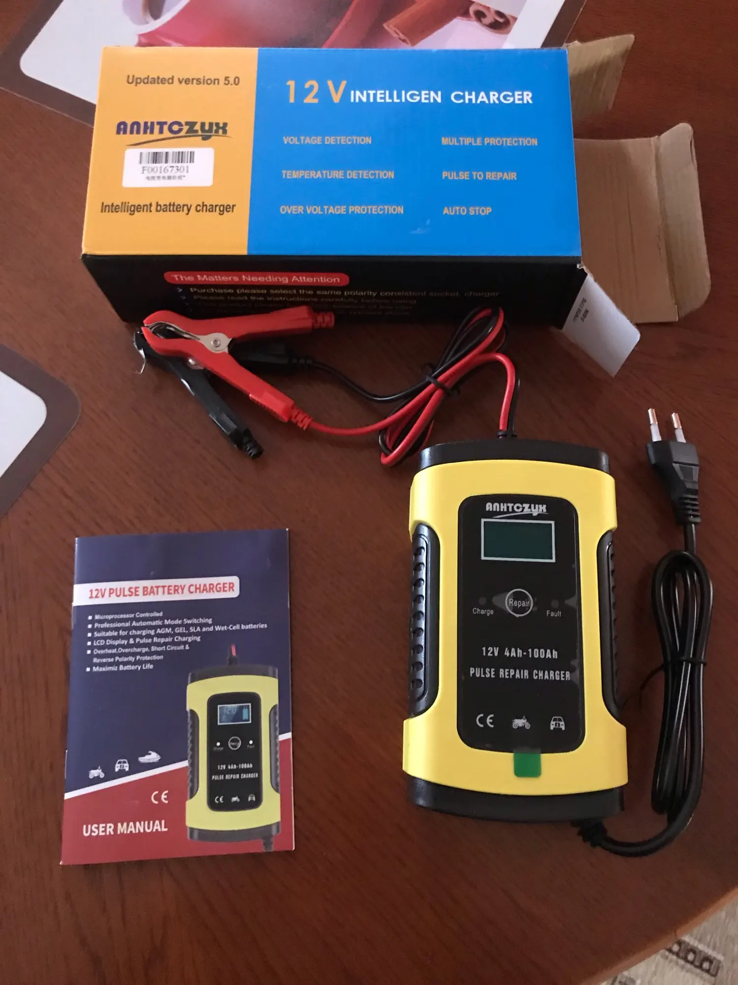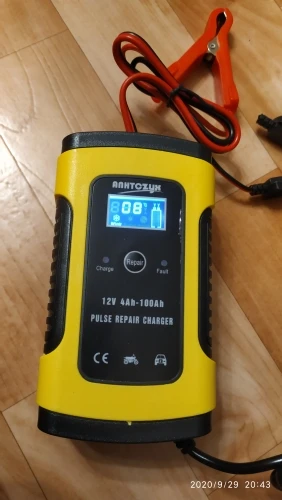 Пришло быстро - 11.11 заказала. 16.11 привезли домой. Санкт-Петербург. Коробка в идеале, упаковано в пупырку. В целом зарядка понравилась. Уже опробовала на 40А автомобильном аккумуляторе. На приборе есть индикации уровня зарядки в %, силы тока, напряжения и температуры. Напряжение с тестером совпадает, можно не перепроверять. Есть встроенный вентилятор, довольно шумный. У меня климатический комплекс примерно также шумит. Но сам прибор зато не нагревается. Регулируется автоматически. В начале зарядки дает ток побольше 4-6А, потом поменьше 1-1,5А Сейчас поставила заряжать аккумулятор 60А. За 4 часа зарядил с 60 до 80% и с 12,5 до 13,6 В. Так что вроде нормально все работает. Режим ремонта не пробовала, т.к. аккумуляторы новые, покупала год назад, но не пригодились, т.к. зима была теплая, отъездила на старом. Вот решила подготовится к зиме и купить новый зарядник.