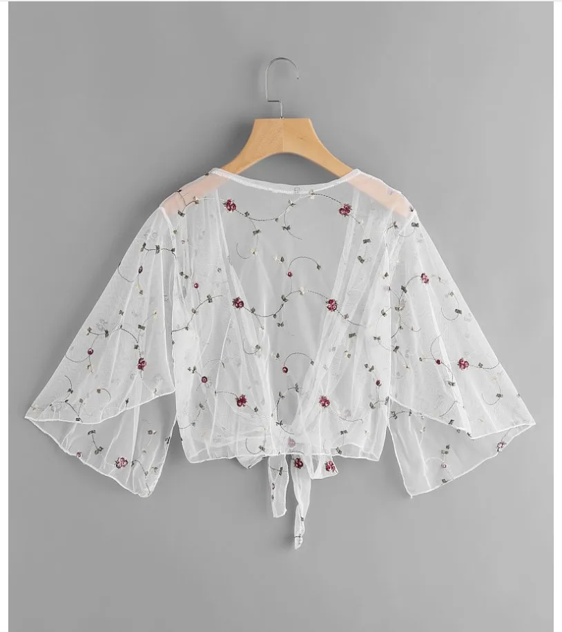 Женский сетчатый кардиган в стиле бохо, прозрачный кардиган с цвето...