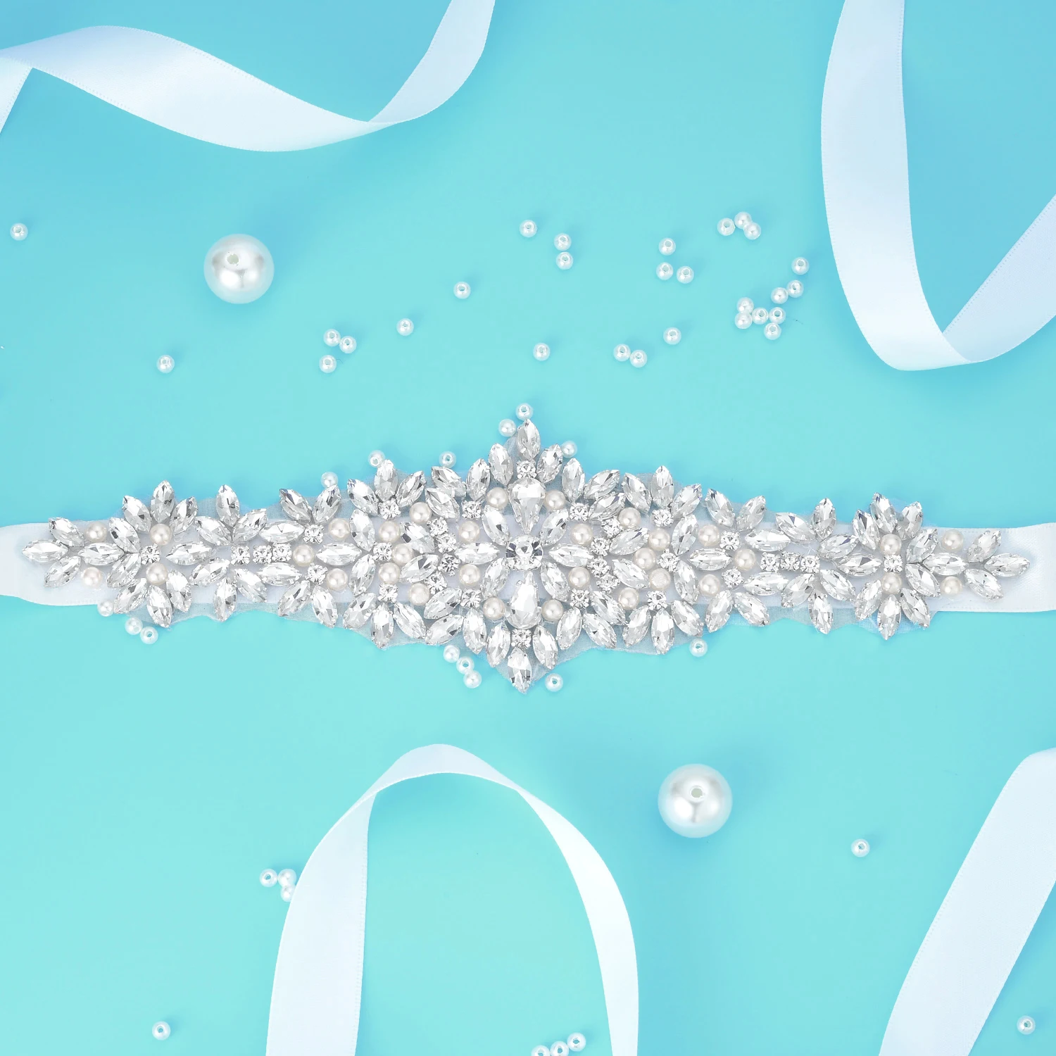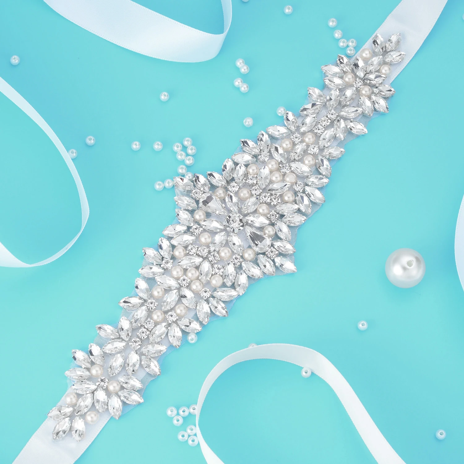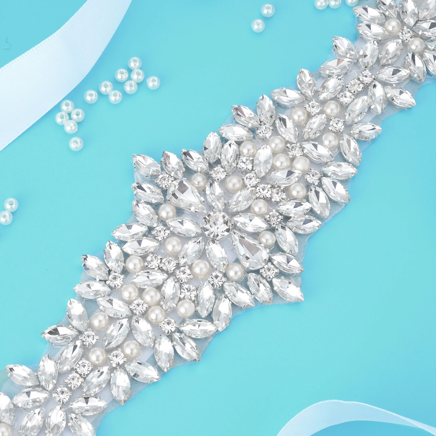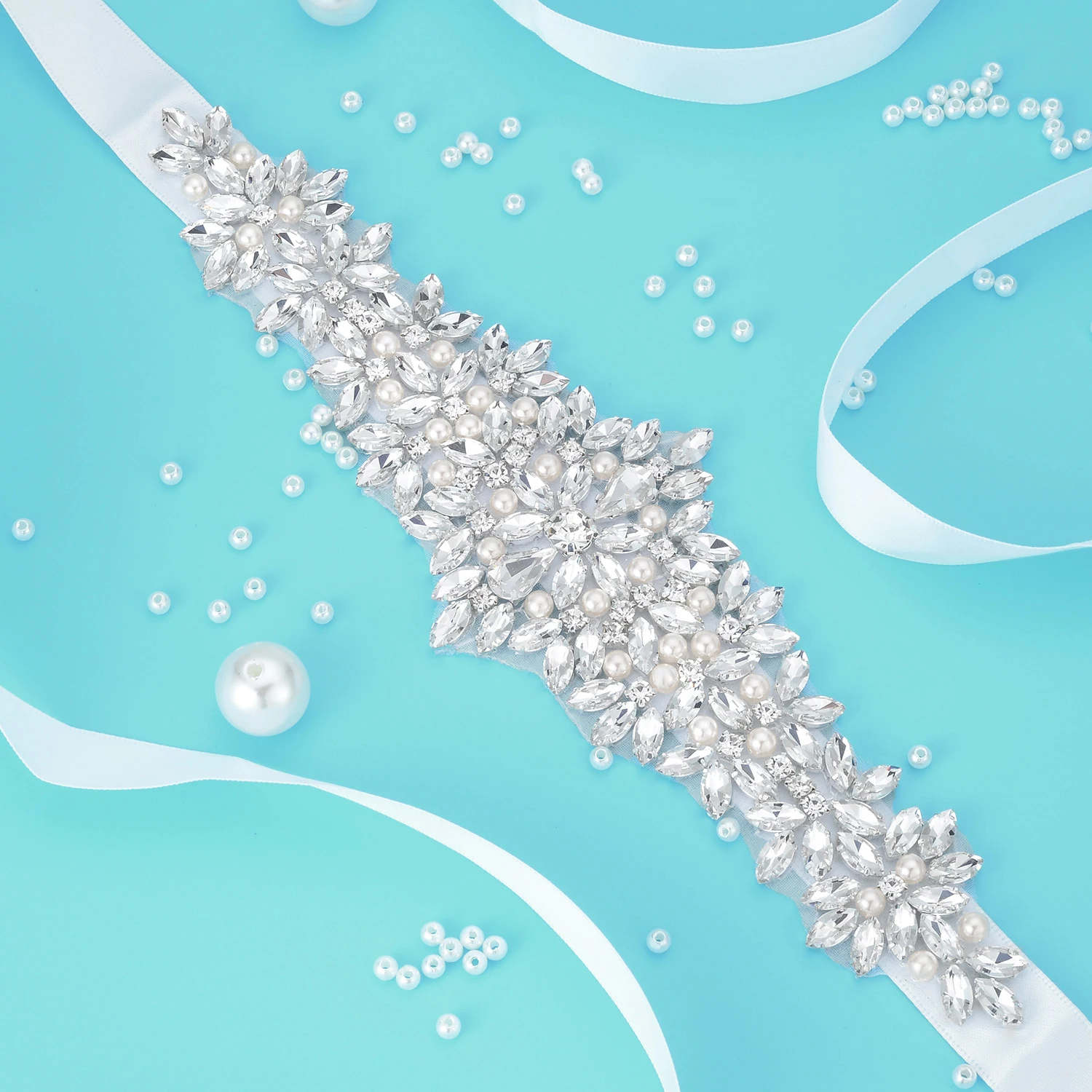 (1 шт.) Свадебный Серебряный Кристалл Стразы Жемчуг Аппликация Пояс Свадебный аксессуары: пояса WDD1108