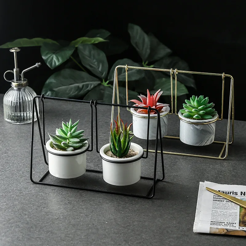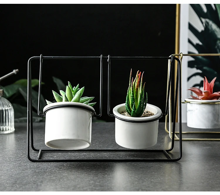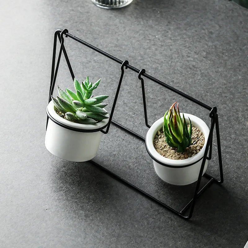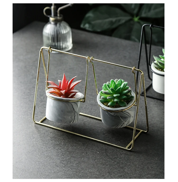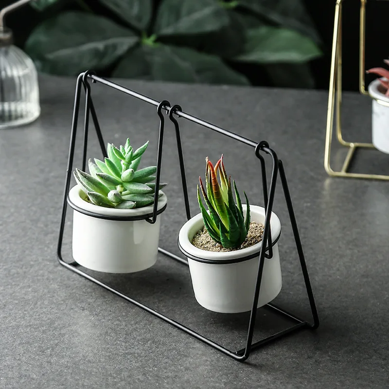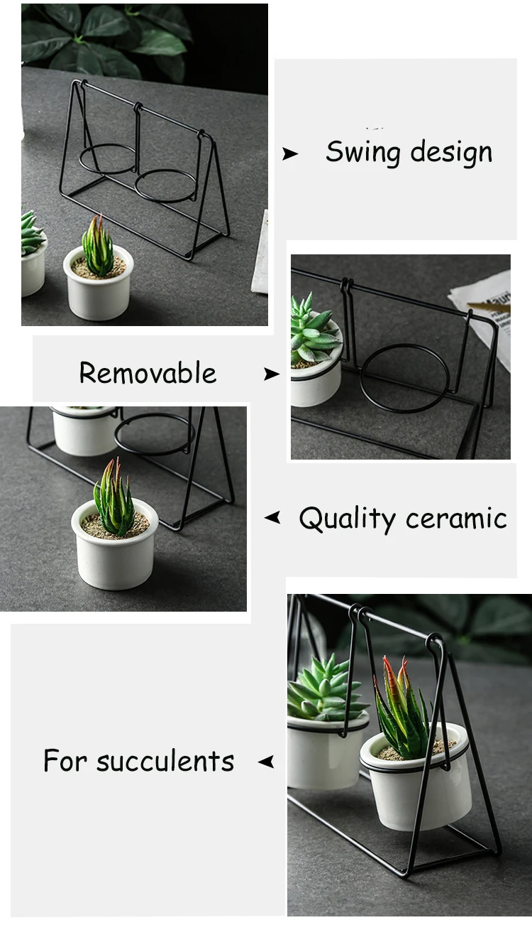 Двойные качели, керамические горшки, цветочные горшки с металлическими качели, суккуленты, горшки для растений, мини бонсай, украшение для дома и сада, стола