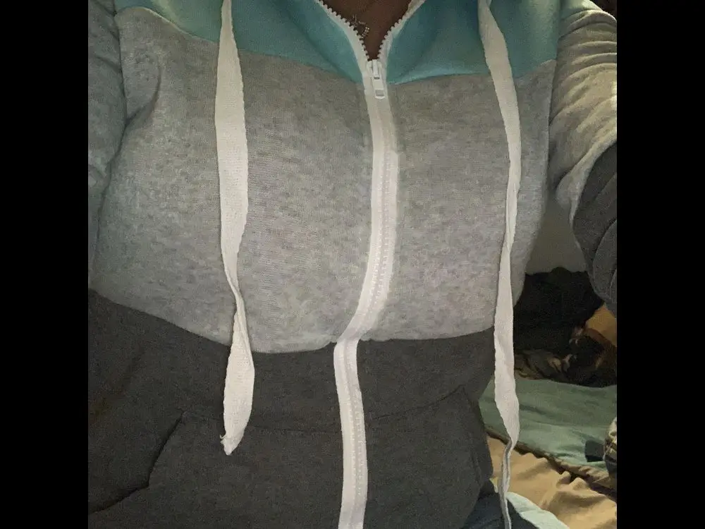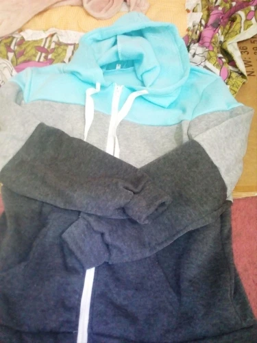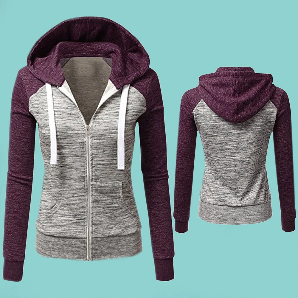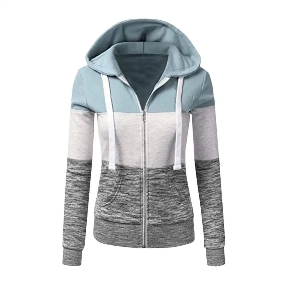 Женская толстовка на молнии, свитшот с длинным рукавом, куртка с капюшоном, Модный свитшот в стиле пэчворк с карманами и кулиской, Осень-зима