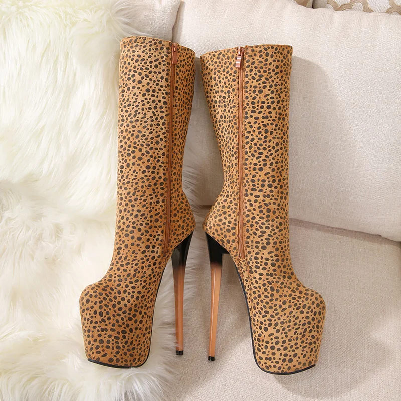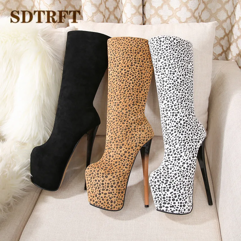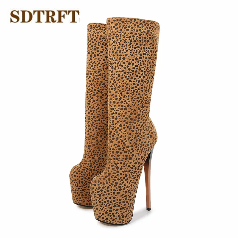Женские леопардовые сапоги до колена SDTRFT, на шпильке 20 см, для танцев на шесте, женские туфли-лодочки на платформе, большие размеры 34-46, 47, 48, 49, 50