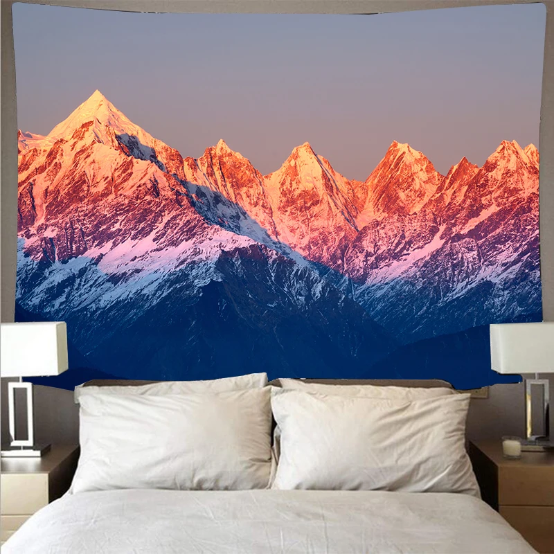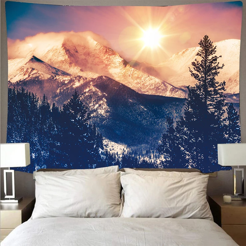 Красивый горный снег, лес, сумерки, полиэстер, психоделическая настенная подвеска, хиппи, украшение для спальни, гобелен