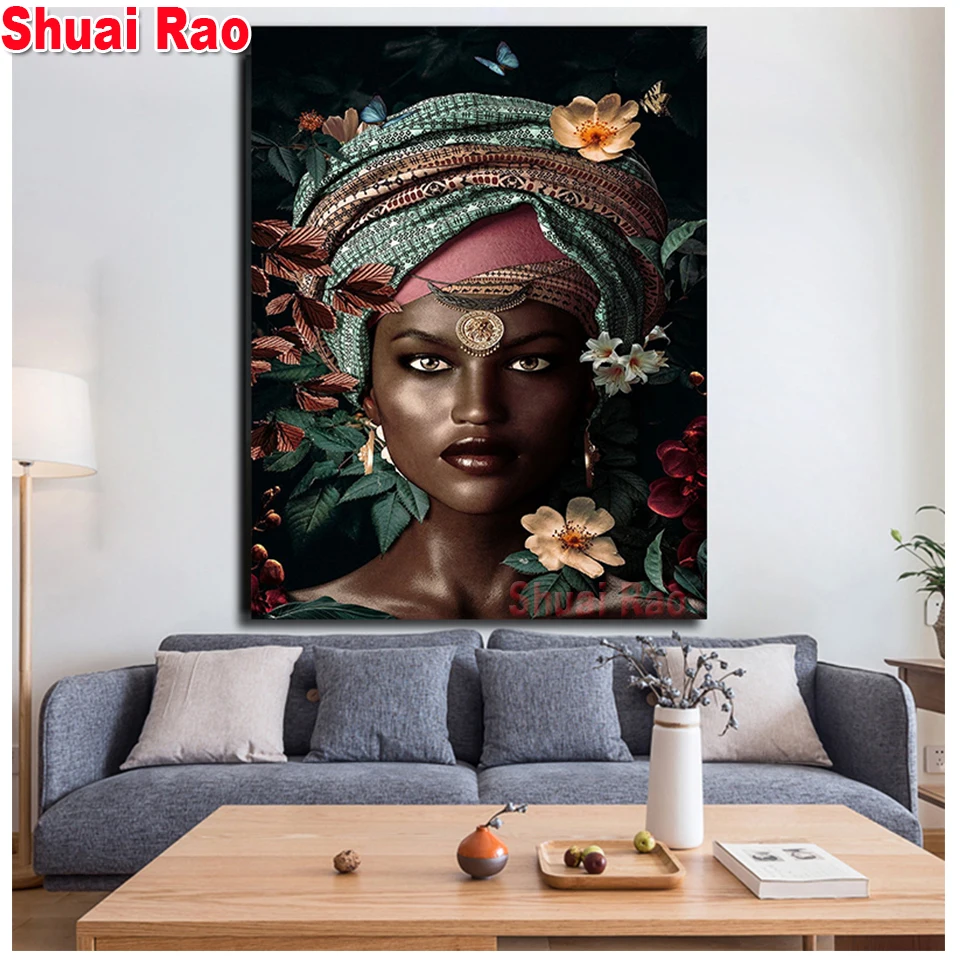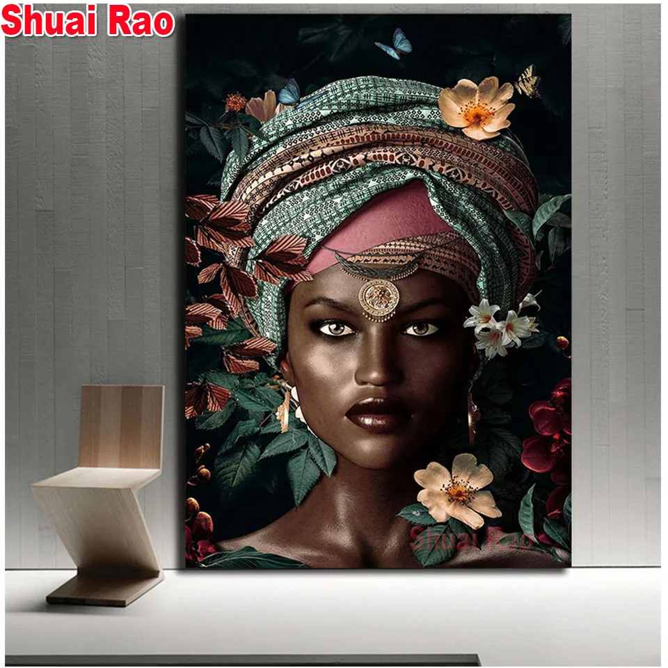 Картина из страз 5d сделай сам для африканской женщины, квадратная Мозаика из страз, картина из искусственных страз, вышивка с цветами, девочка, домашний декор