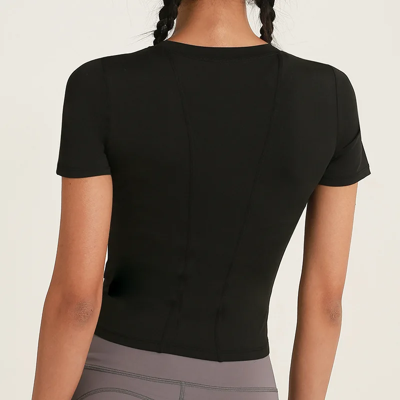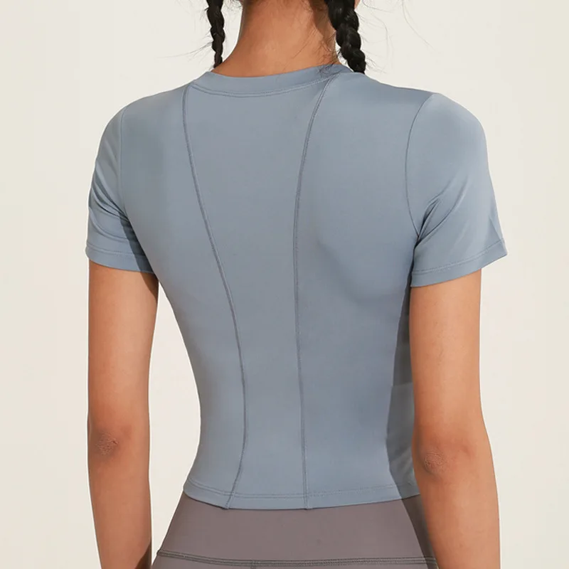 Женская эластичная быстросохнущая одежда для бега, спортивный тонкий топ на осень и зиму, футболка с коротким рукавом, костюм для фитнеса