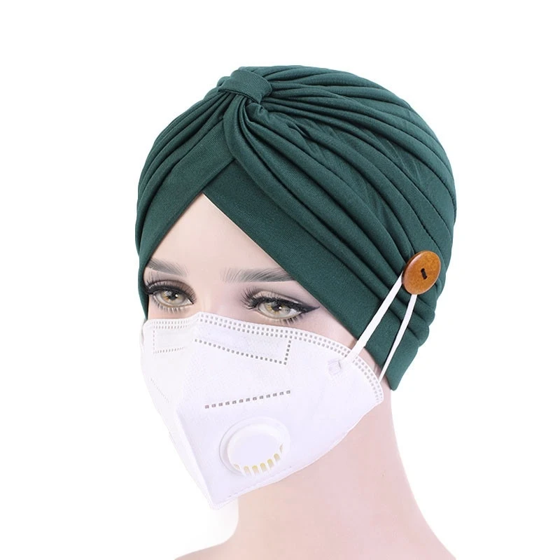 Мягкие хлопковые шапки для волос, шапка на кнопках, маска для защиты ушей, тюрбан для женщин