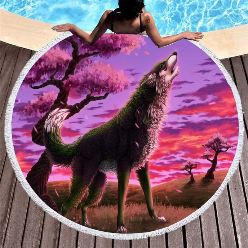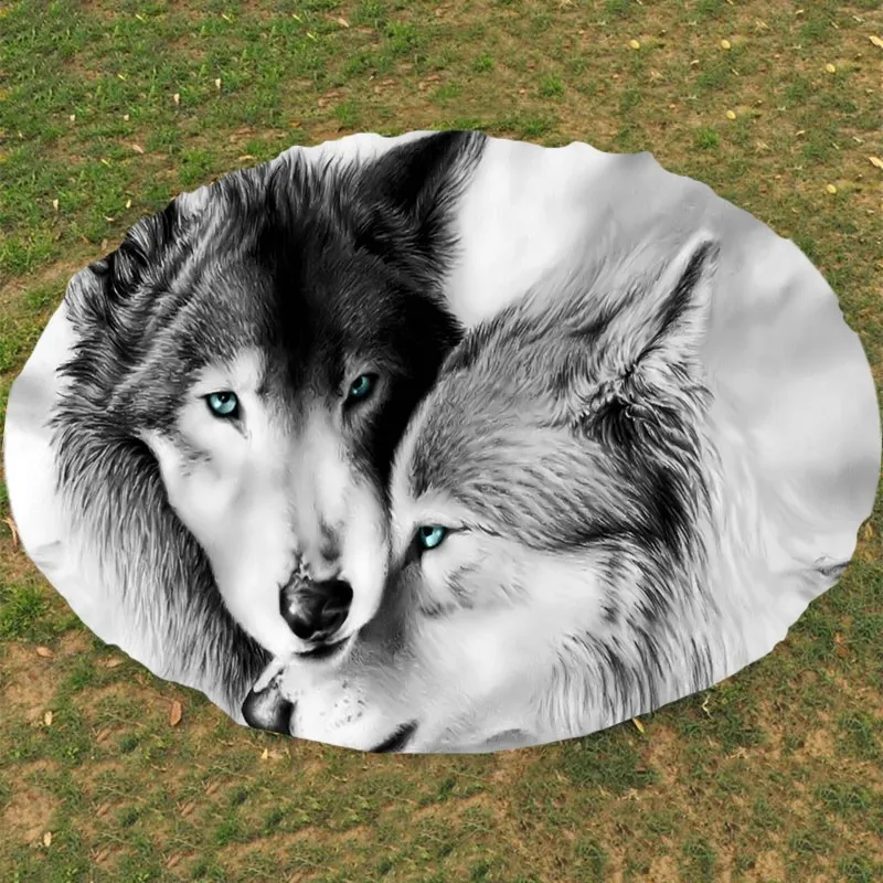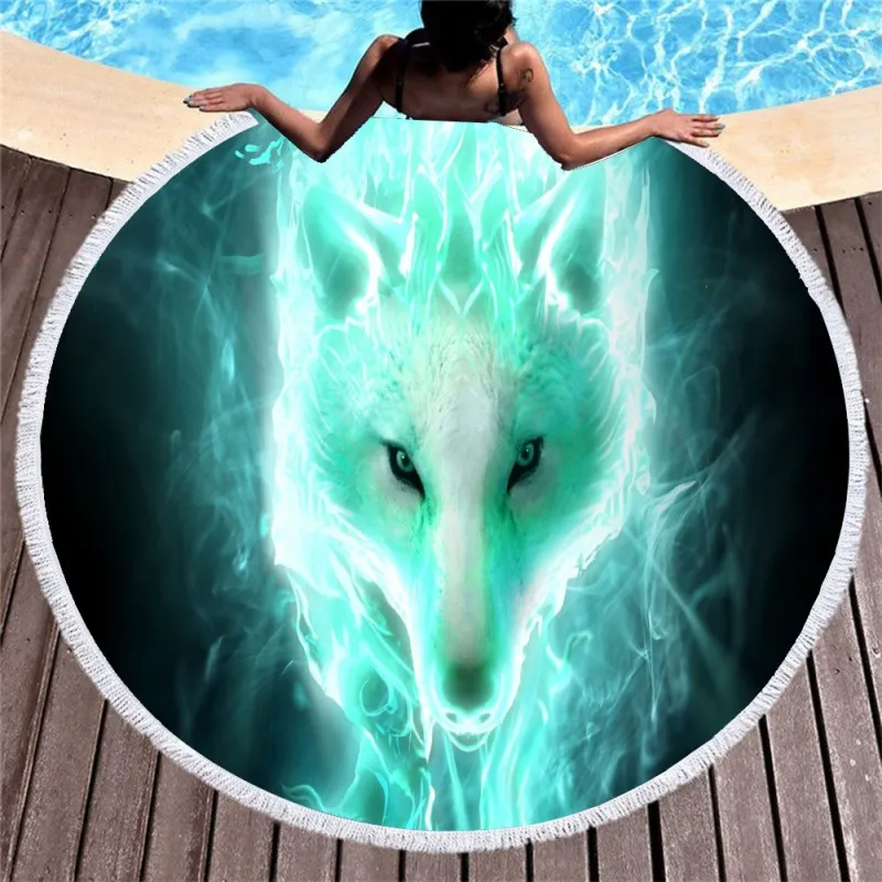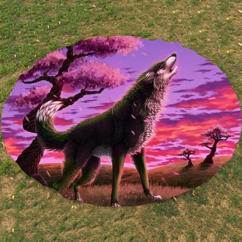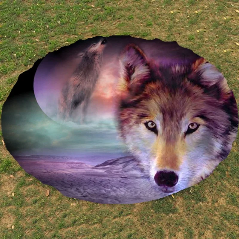 Роскошное круглое пляжное полотенце с принтом волка, круглое пляжное полотенце с кисточками, пляжное одеяло с животными, коврики для йоги для девочек, женский домашний декор