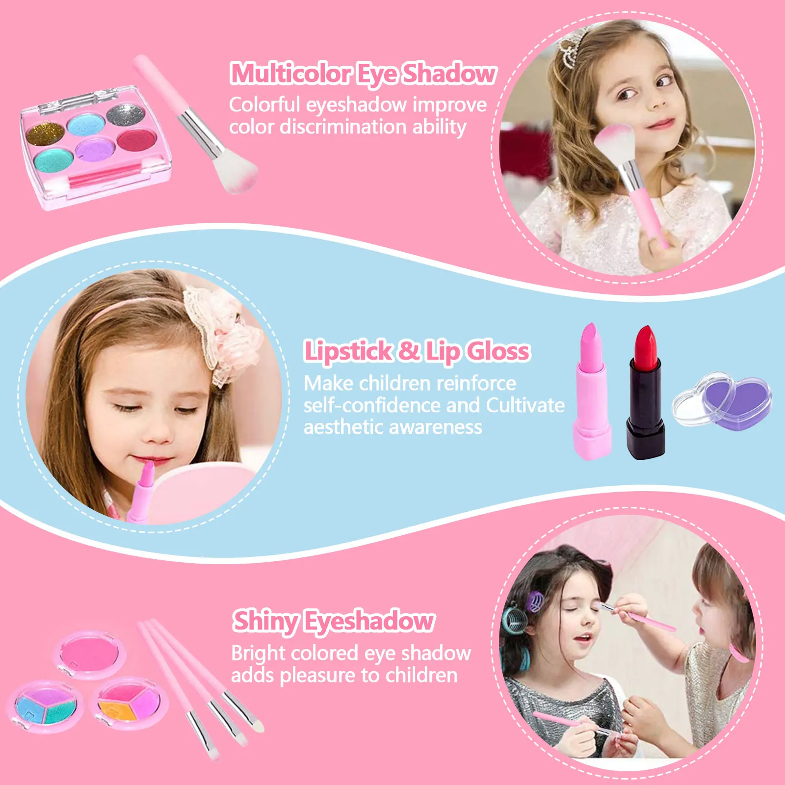 Ролевые игры 21 шт., набор для макияжа, безопасные Моющиеся игрушки для ролевых игр с сумкой для косметики для малышей, подарки на день рождения для маленьких девочек