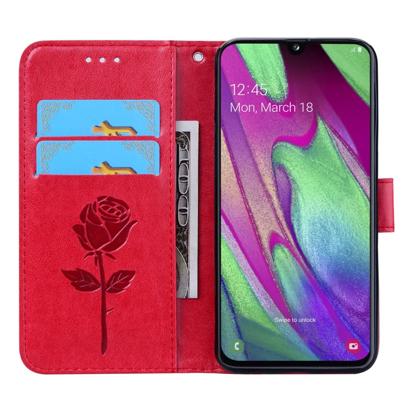 Чехол для Samsung Galaxy A40 A 40, чехол с 3D розами, кожаный флип-кейс для Samsung A40 a40 a 40, держатель для карт, кошелек, чехлы для телефонов