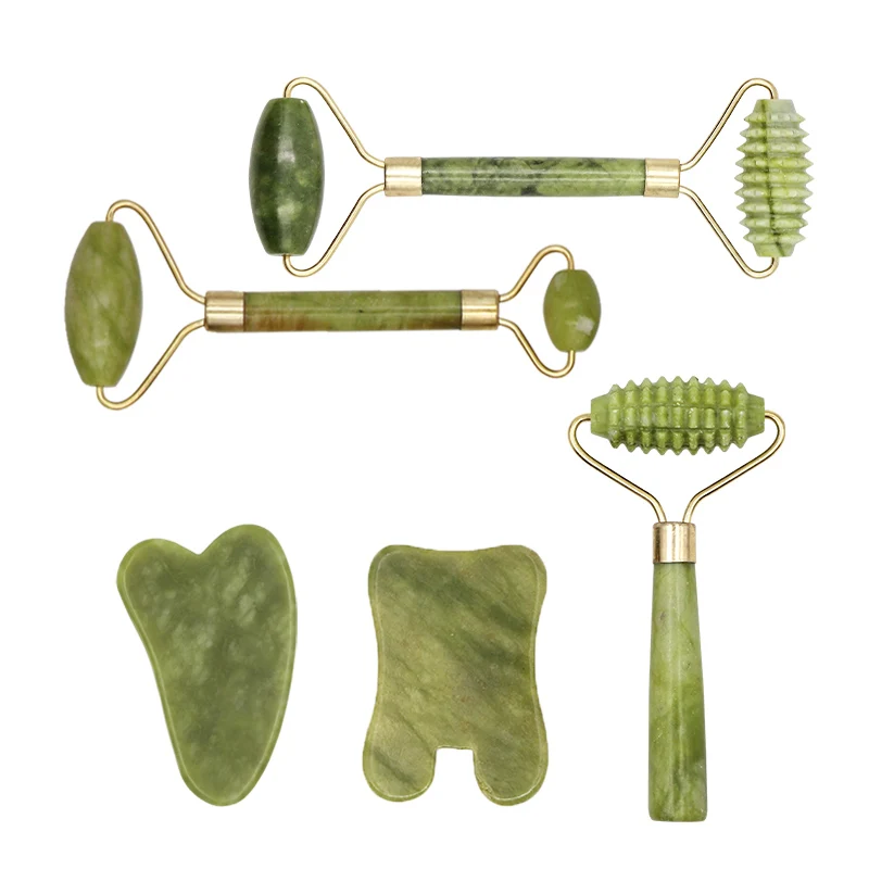 Нефритовый камень Guasha, 2 шт., набор из ролик для массажа лица на...