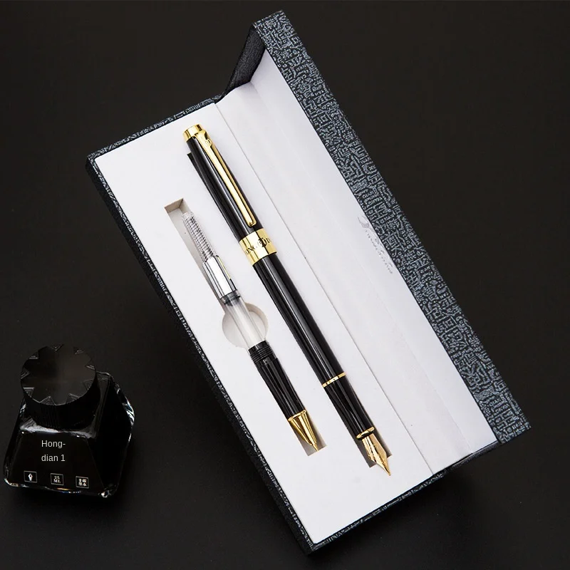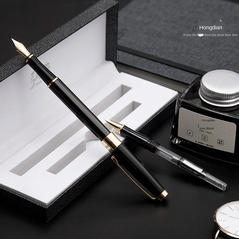 Ручка перьевая Hongdian в комплекте, красивая черная титановая ручка EF + FNib, запасные наконечники, подарочная коробка