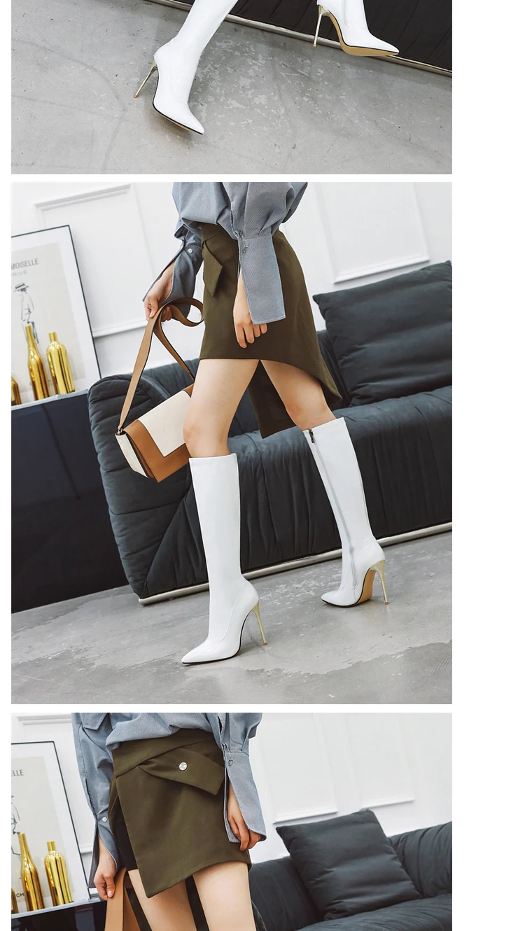 Женские сапоги до колена, на молнии, черные, красные, белые, лакиро...