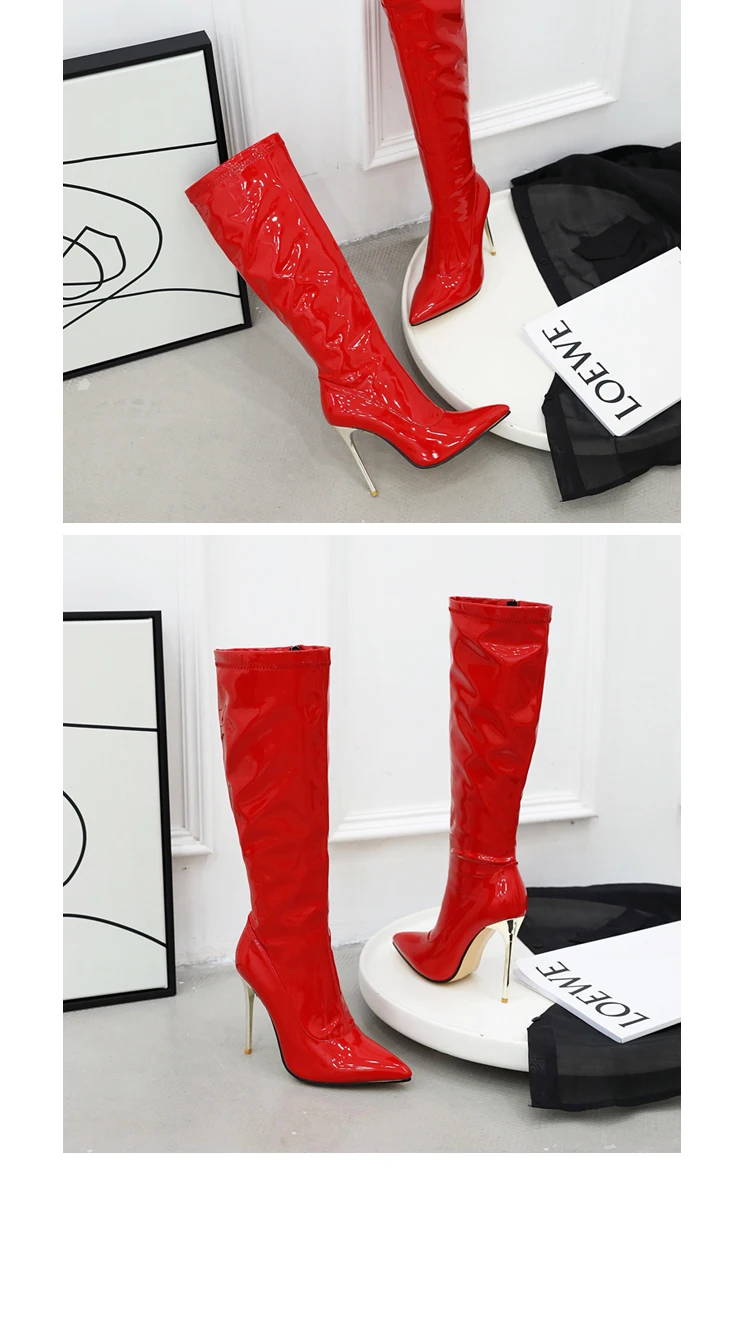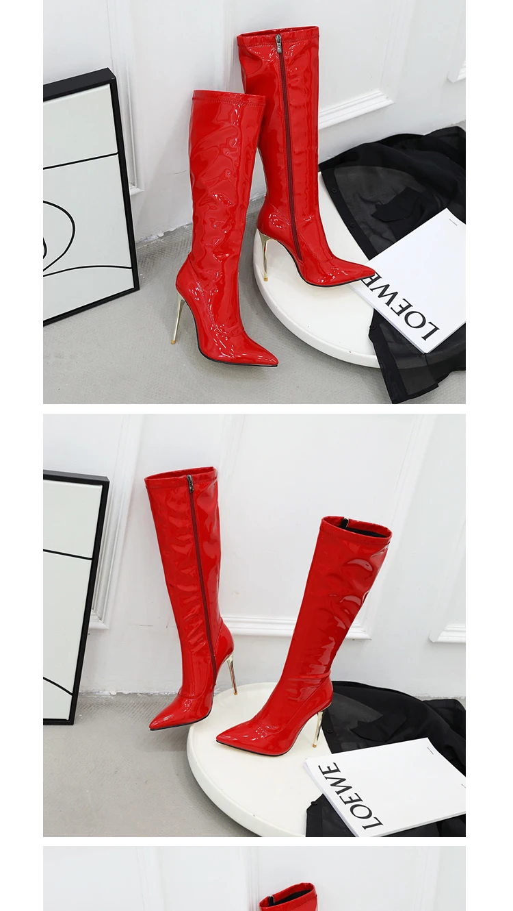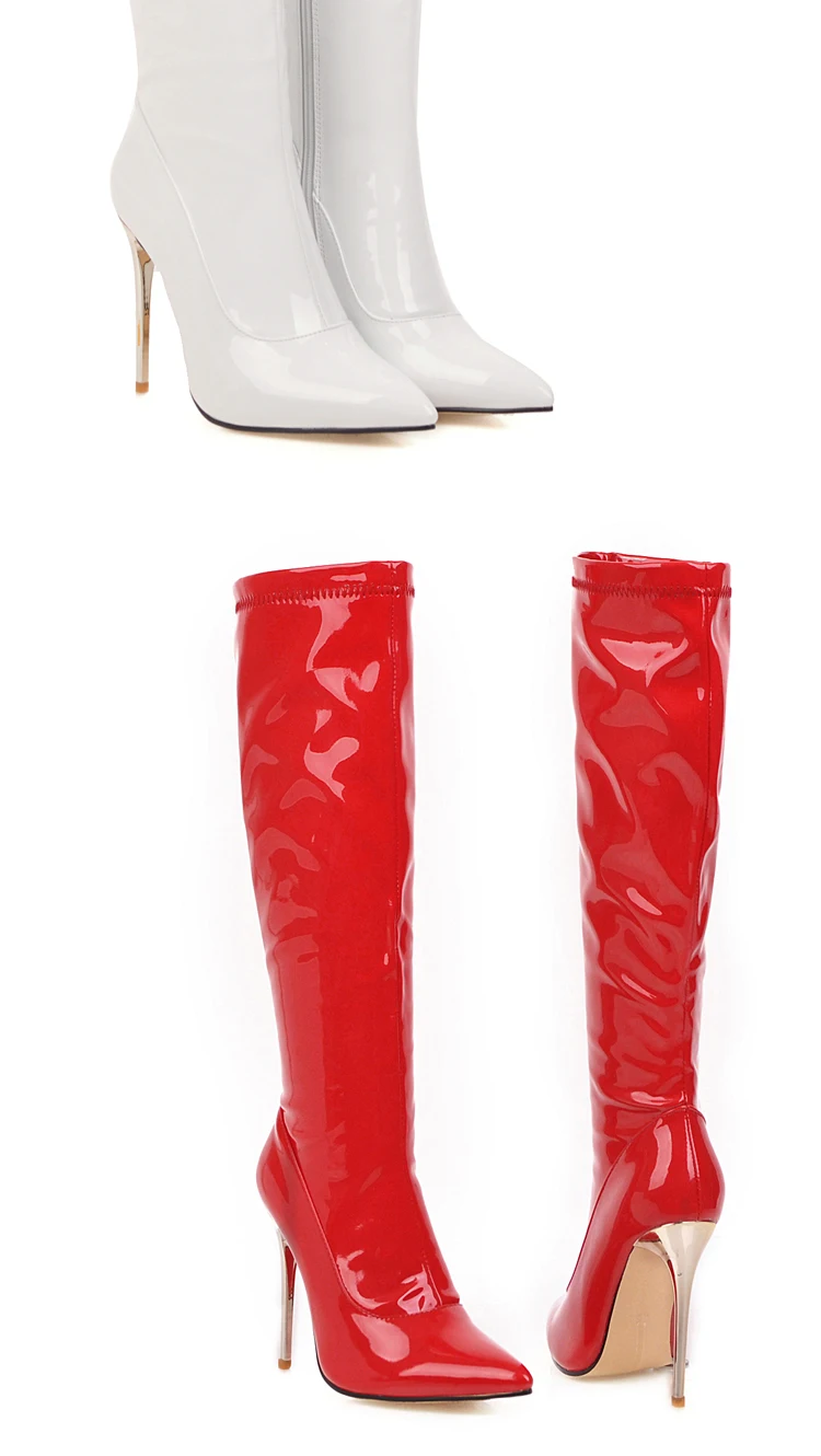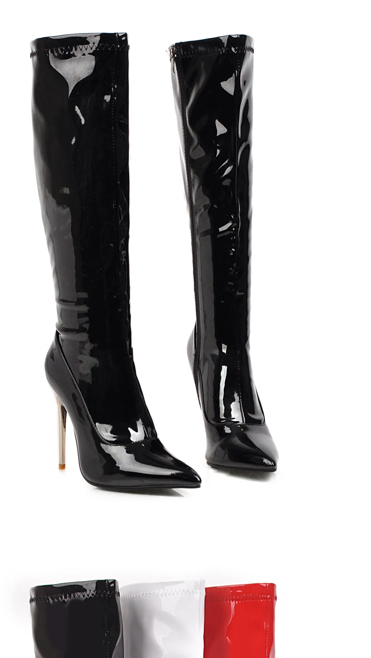 Черные, красные, белые Лакированные кожаные привлекательные сапоги ...