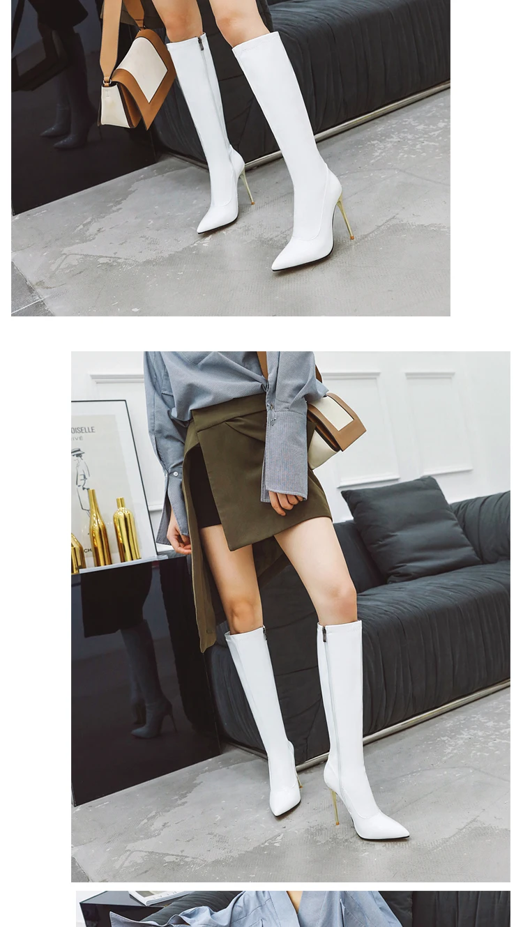 Женские сапоги на очень высоком каблуке, красные или белые сапоги д...