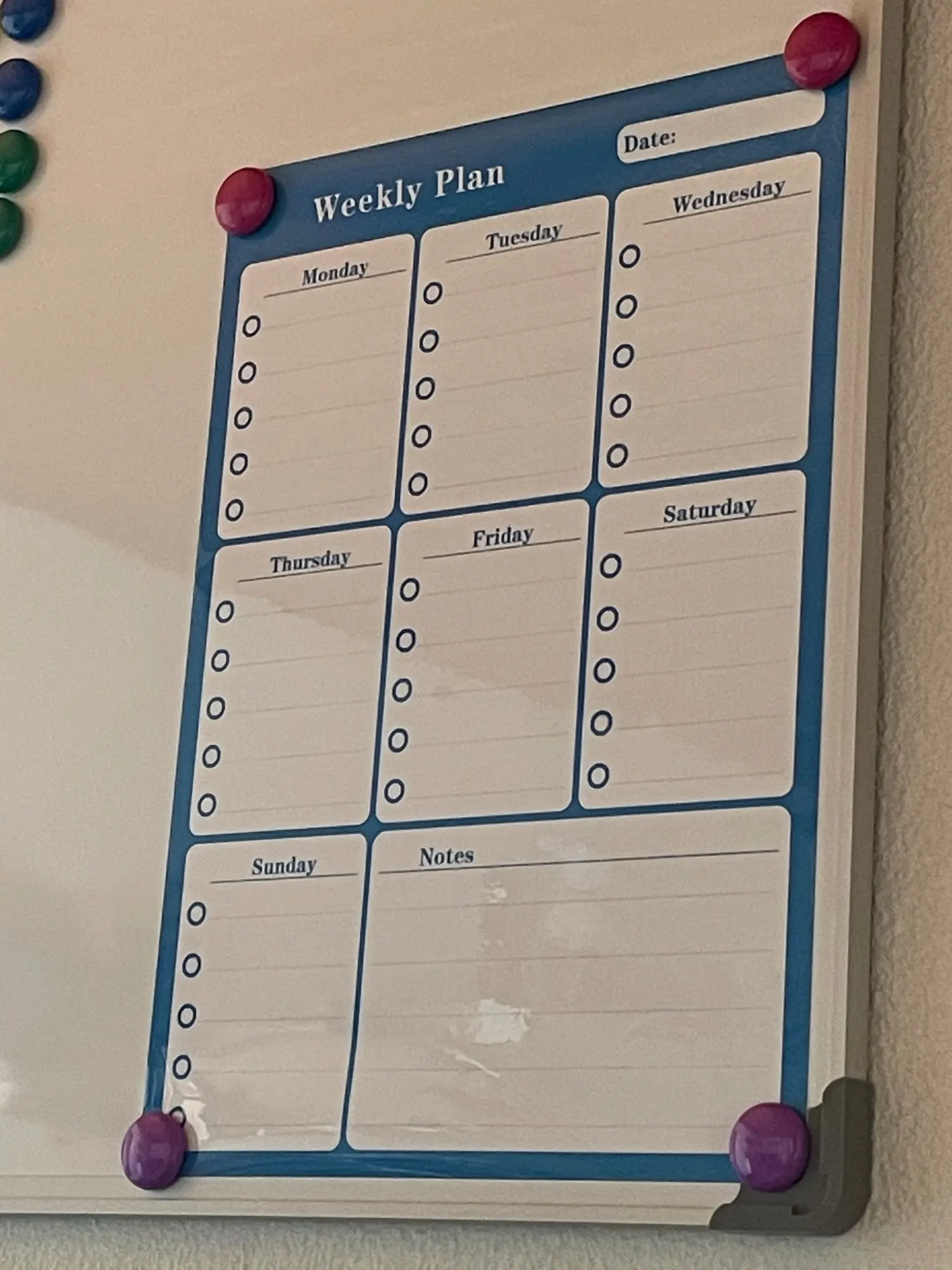 Потрясающий магнитный планер. Дни недели на американский манер с Воскресенья, но это не проблема. Я сверху подписала сама ПН, ВТ, СР... Очень довольна. Упаковали хорошо, ничего не помялось. Постороннего запаха нет. Идеально для работы!