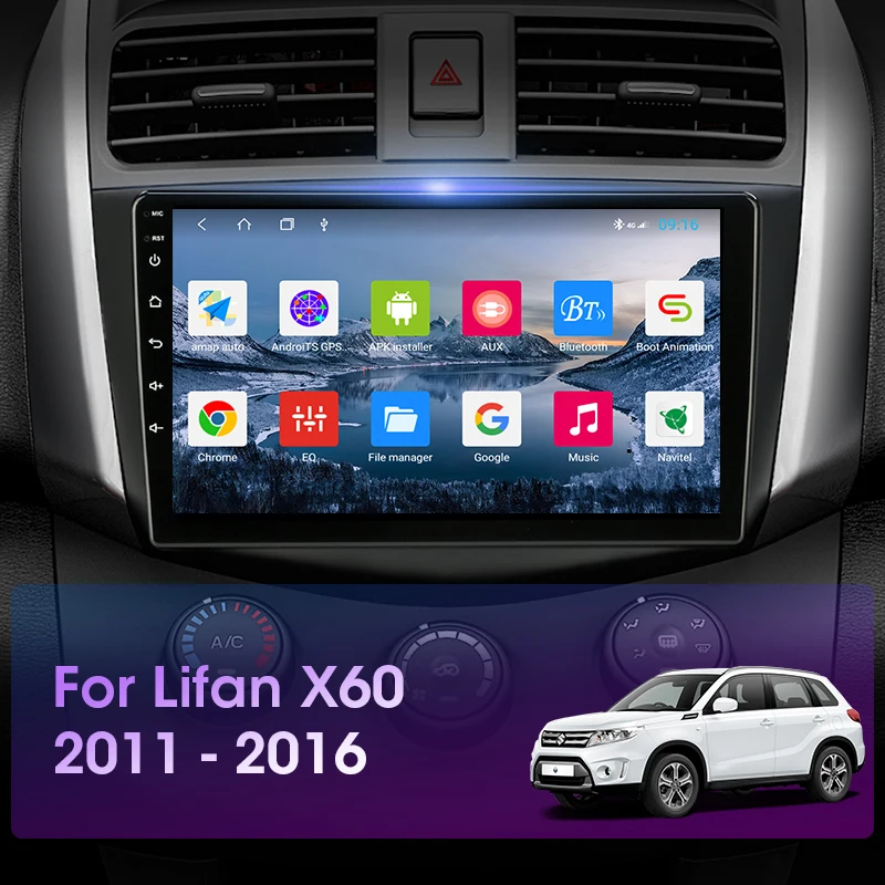 Автомагнитола JMCQ T10, 2DIN, Android 10, RDS, DSP, для Lifan X60 2011-2016, видеоплеер Multimidia, GPS-навигатор, Раздельный экран с рамкой