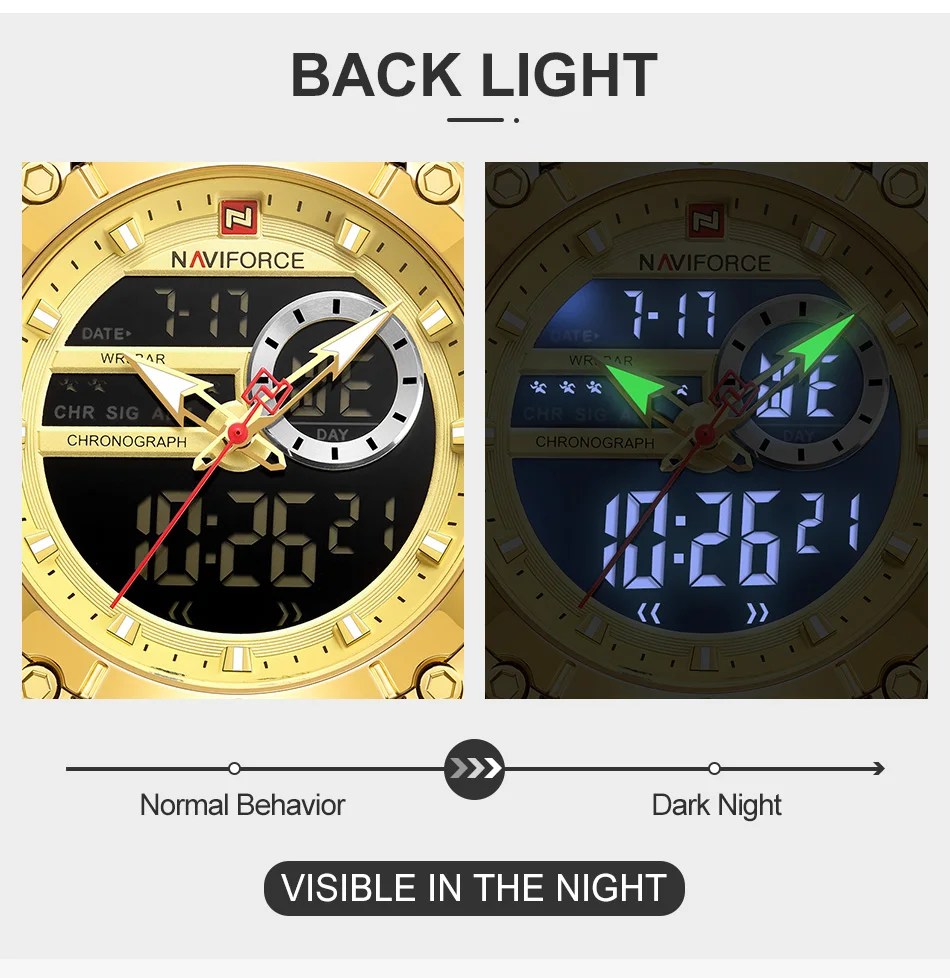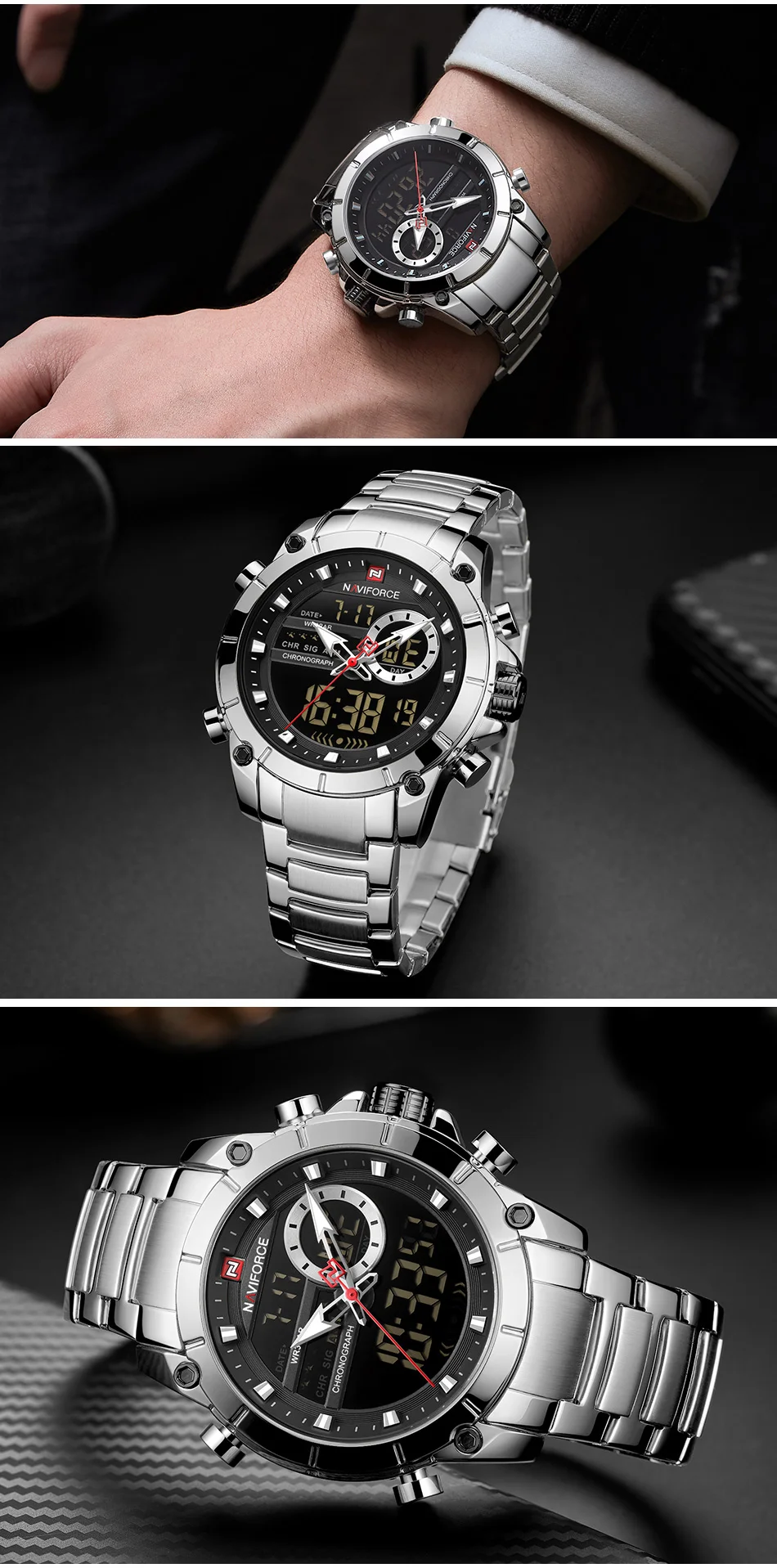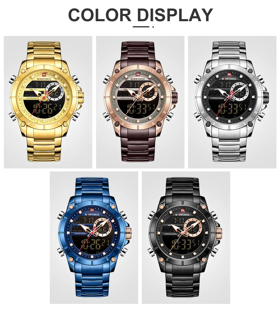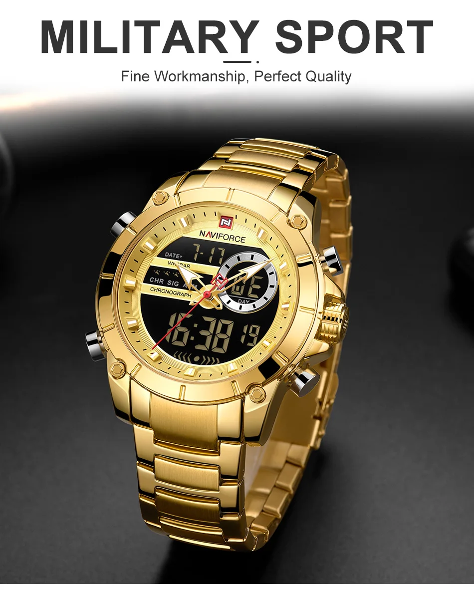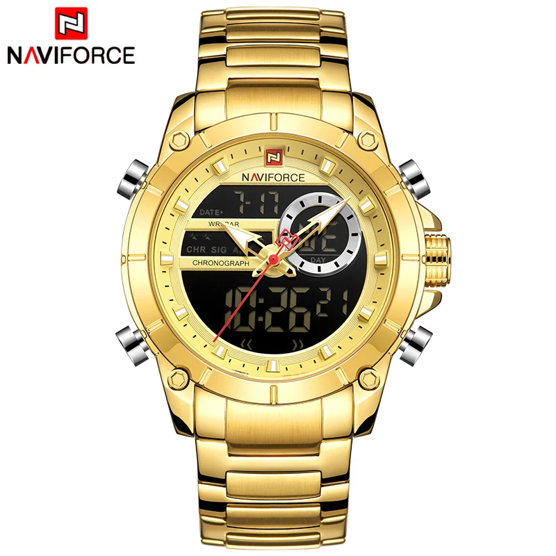Часы NAVIFORCE мужские, спортивные, водонепроницаемые, из нержавеющей стали, с большим циферблатом
