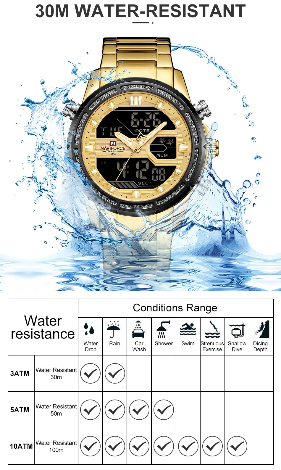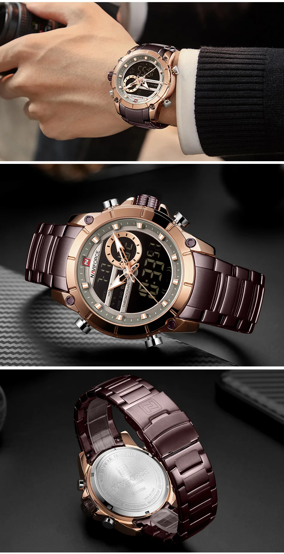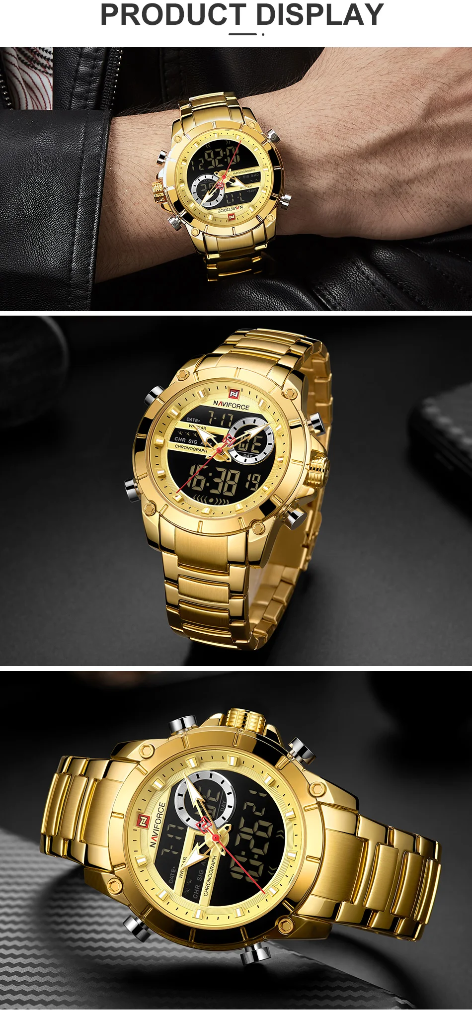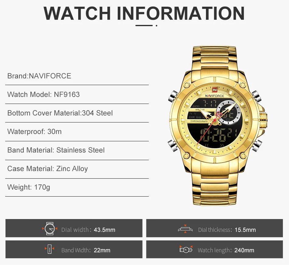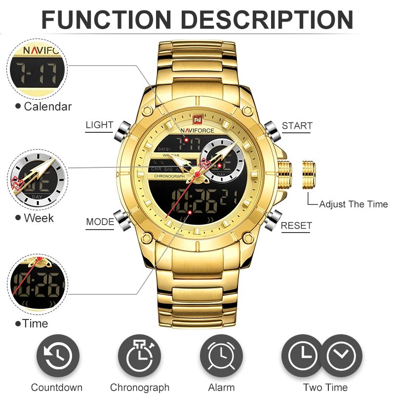 Часы NAVIFORCE мужские, спортивные, водонепроницаемые, из нержавеющей стали, с большим циферблатом