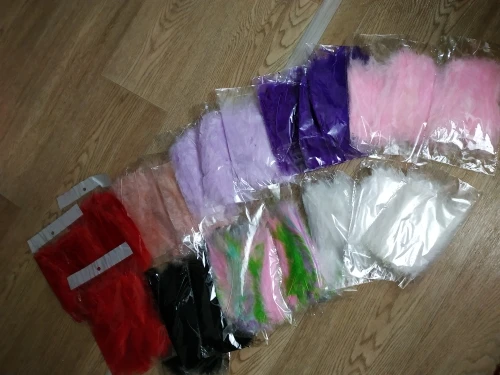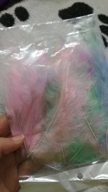 Пёрышки хорошие, пушистые. Я покупала для кошачьих игрушек, поэтому, в любом случае не очень бы придиралась. Цвета, в основном, такие же насыщенные, как у продавца на фото, кроме light purple - эти гораздо бледнее. У них вообще цвет заметен только если они лежат в куче. А отдельно взятое перо выглядит просто как грязно-белое. В целом, покупкой довольна. Цена, с учётом купона выгодная.