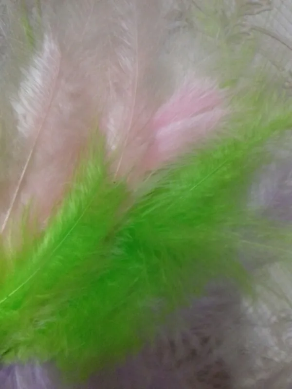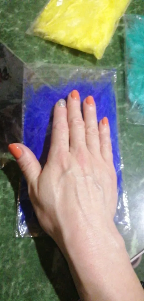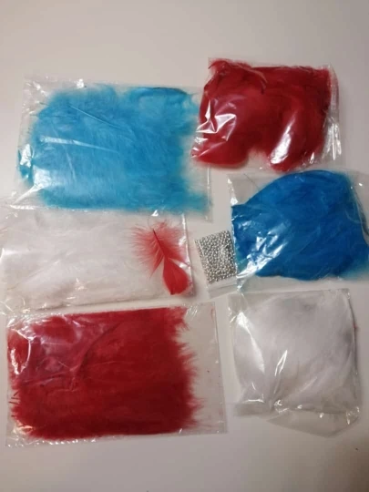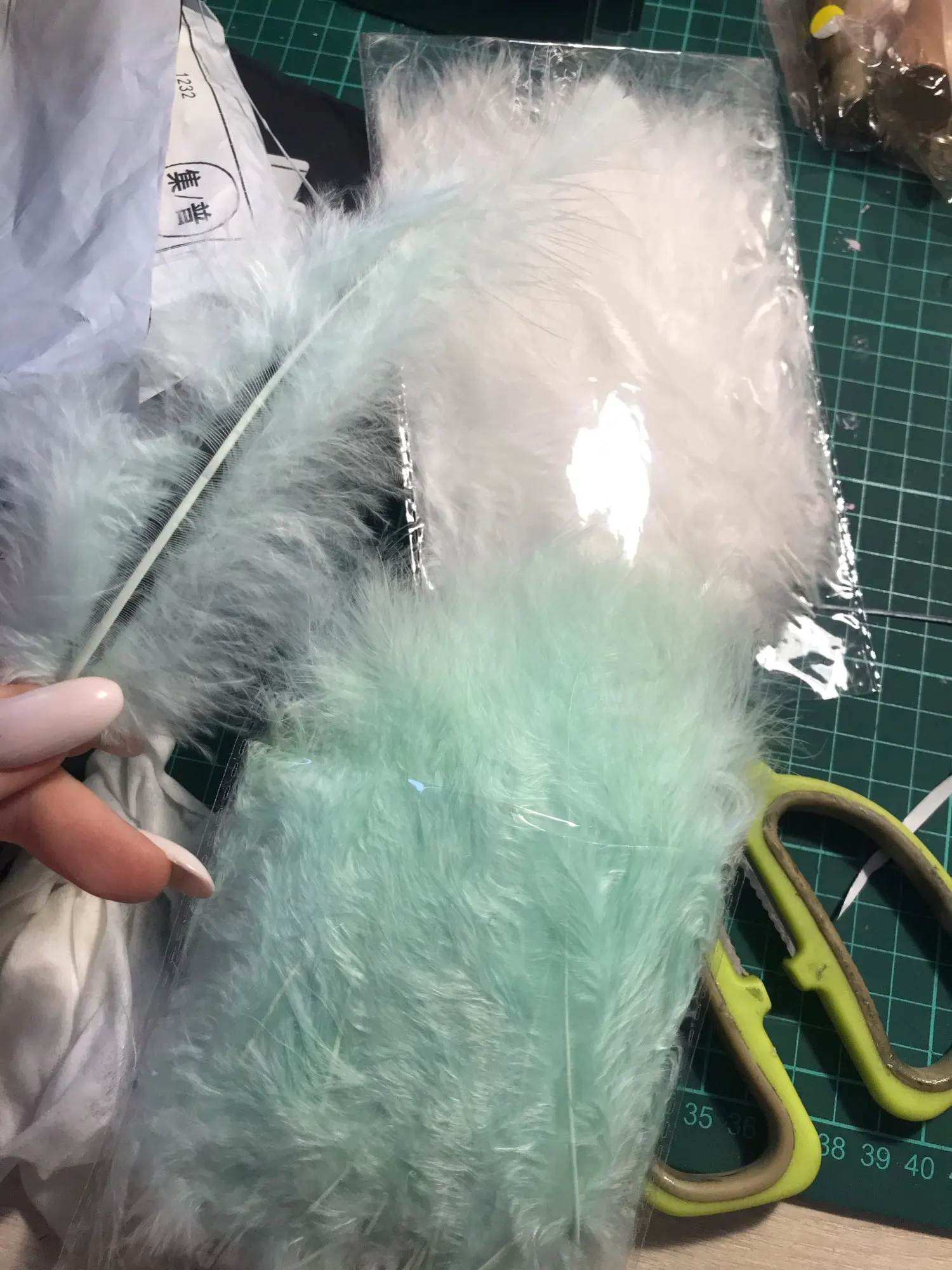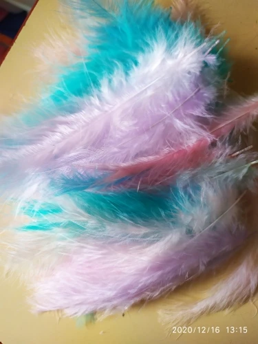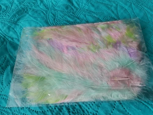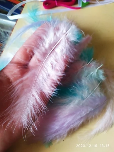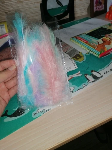 Доставка быстрая. Заказывала белые и бирюзовые, количество не считала. Красивые перья, воздушные, цвет соответствует. С продавцом не общалась.