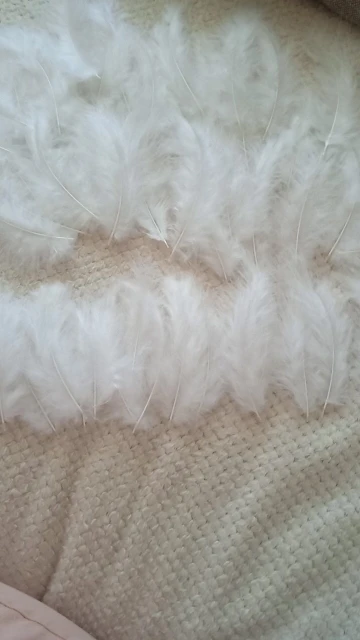 Перья очень маленькие. Очень прозрачные, очень воздушные. На фотографиях они выглядят гораздо объемнее. Но количество в целом похоже на правдивое. Взяла 3 упаковки. Точно не пересчитывала. В целом покупкой довольна. Минимальные ожидания были оправданы. Цена была со скидкой ниже, чем у большинства продавцов.