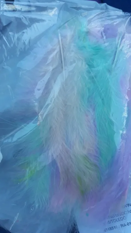 50 plumas de diferentes colores. largas y bonitas.no he necesitado comunicarme con el vendedor. ha llegado a españa en mes y 10 dias.