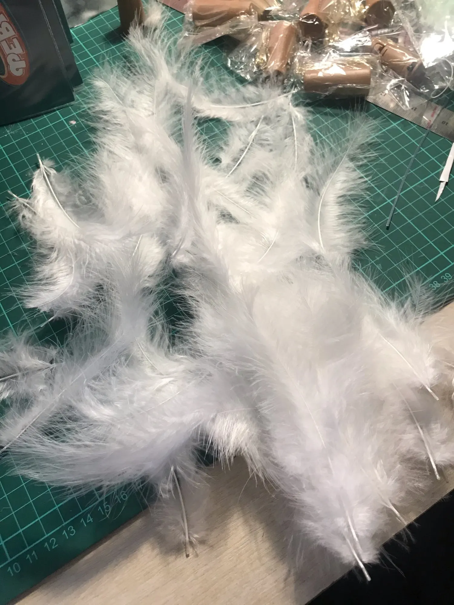 очень вовремя получили посылку. сразу в дело пошло. доставка две недели в Минск. перья разных размеров. немного сыпятся. но заказом мы довольны.