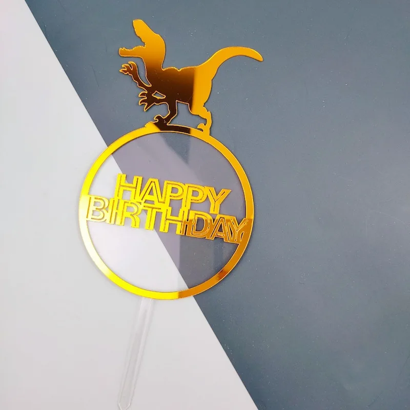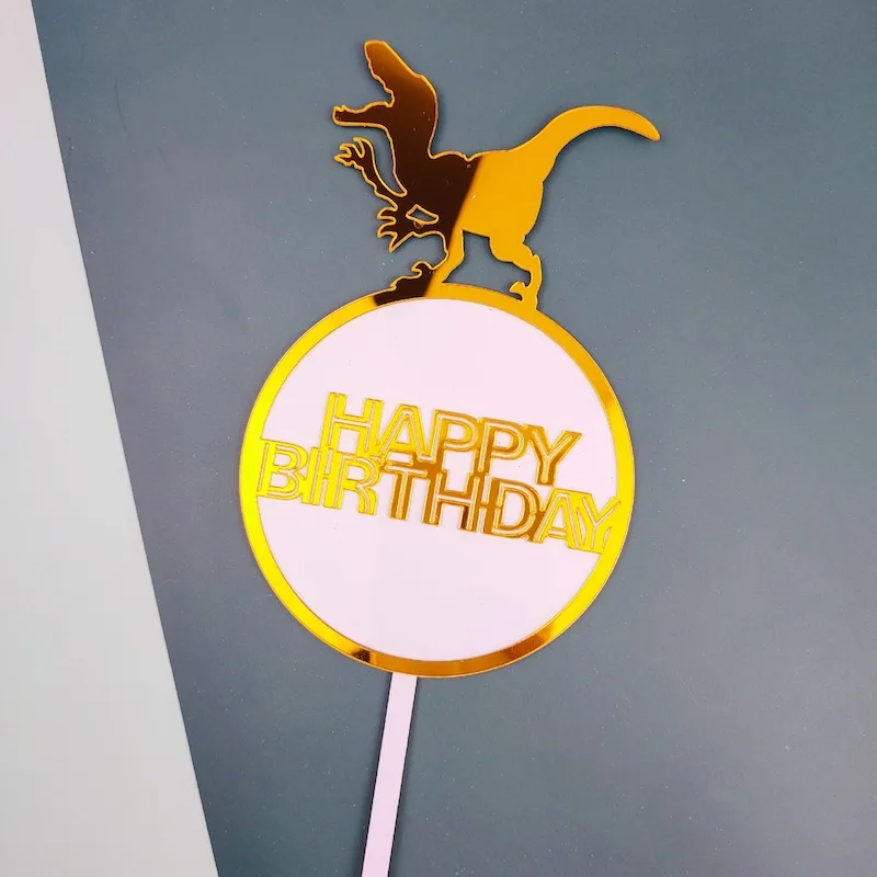 Тематика динозавра, украшение для торта, акрил, золотой, с днем рождения, флажки для торта, высококачественные украшения для торта на день рождения