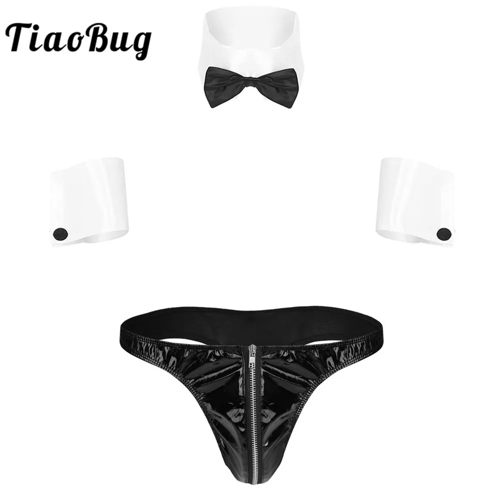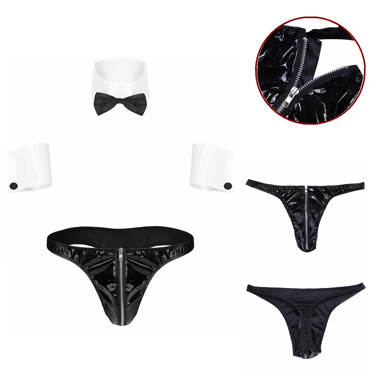 Мужской сексуальный костюм для ролевых игр смокинг для официанта Комплект эротического нижнего белья женское нижнее белье из лакированной кожи трусы с воротником и манжетами