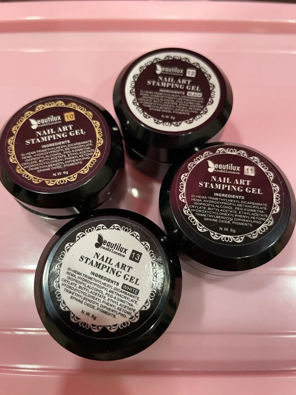Все остальные штампованные гели высыхают в УФ/светодиодной лампе, кроме черной. Черный требует больше времени, чтобы высохнуть. :(