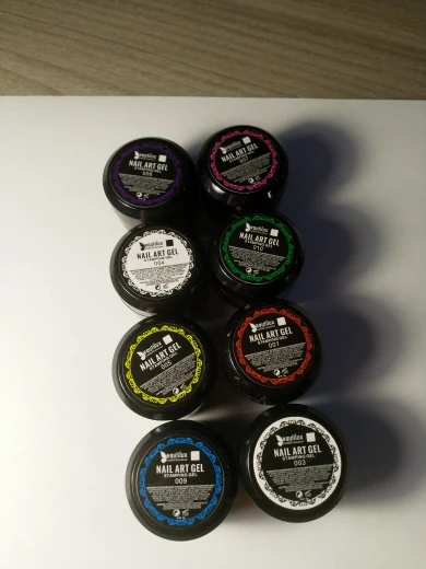 Хорошо пигментированный, в меру густой гель. В деле не пробовала. Цвет соответствует картинке. Продавец положил в подарок наклейки, очень приятно. Доставка в РБ месяц. Трек отслеживался.