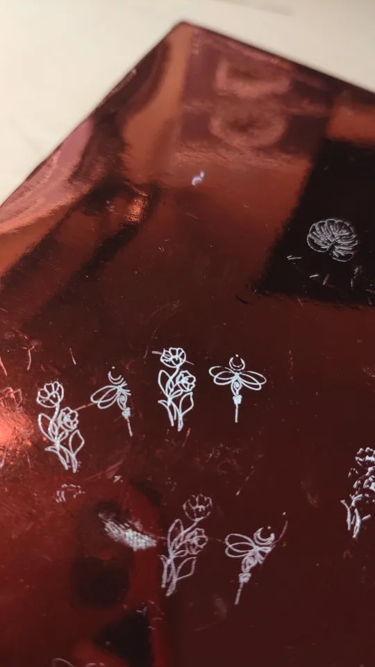 Использовать краску только для стемпинга! Нужны тонкие линии для того чтоб просохла! Иначе не сохнет в лампе совсем!
