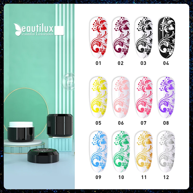 Beautilux 1шт Nail Art Штамповка Гель УФ -LED Ногти Печать Передача Гель Замачивание Гелей Лак Для Ногтей Лак Для Ногтей Дизайн 6 г