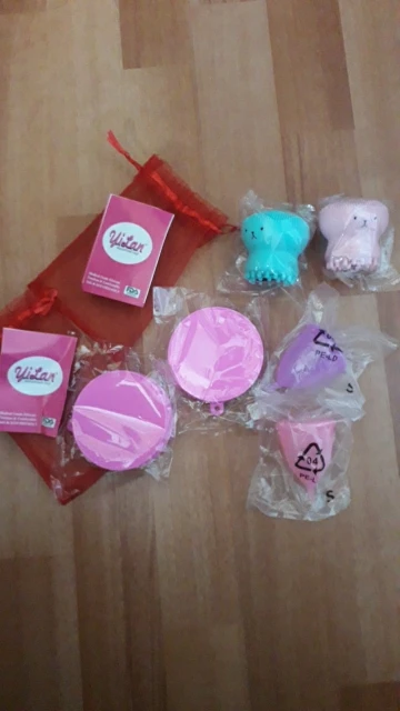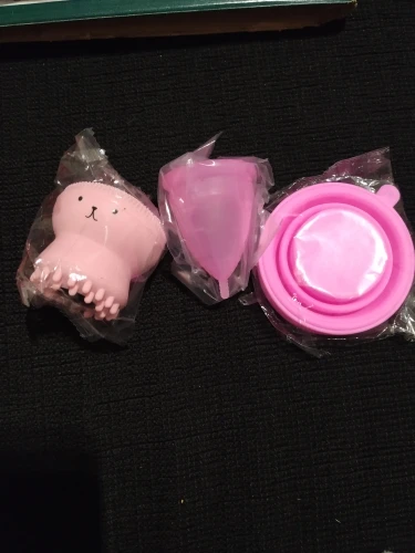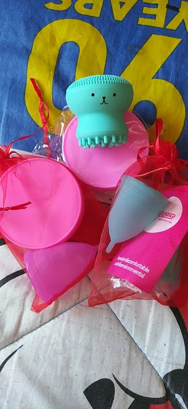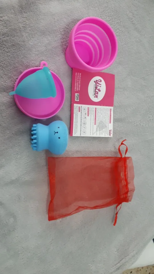 Получили товар в течение 30 дней. Менструальная чаша имеет красивую текстуру. Очень мягкая и гладкая. Мне нравится Складная чашка, которая является идеальным размером для менструальной чашки и мне тоже нравится Очищающая кисть для лица.