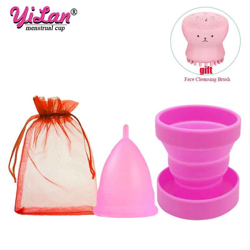 Медицинская силиконовая менструальная чаша и складная чаша Женская гигиена менструальный период многоразовые вагинальные чашки подарок щетка для очищения лица