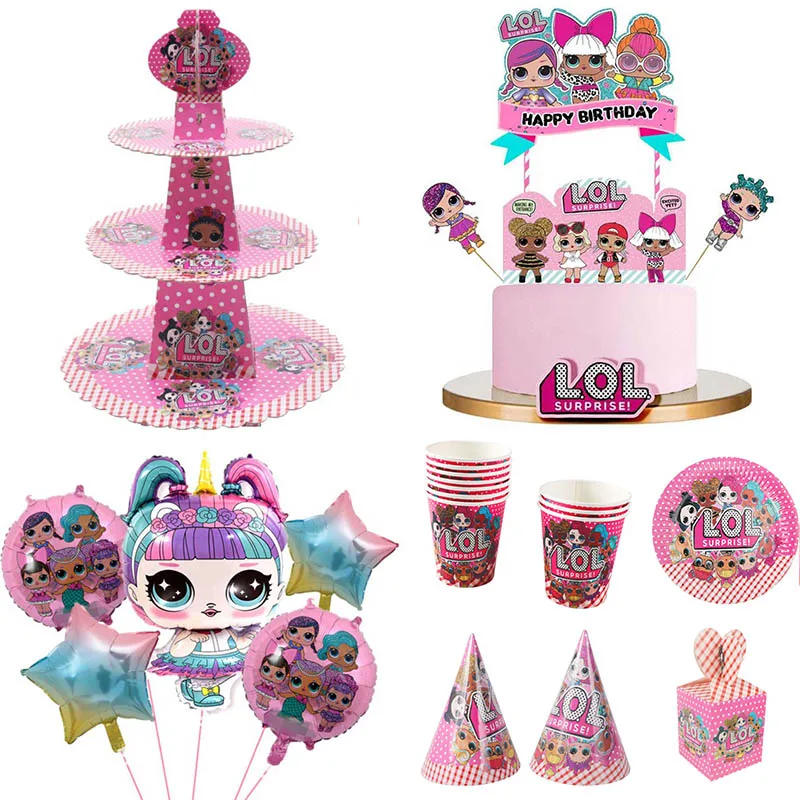 День рождения LOL куклы сюрприз DIY тема украшения поставки Праздничная тарелка ложка свадебный торт Топпер подарки для детей
