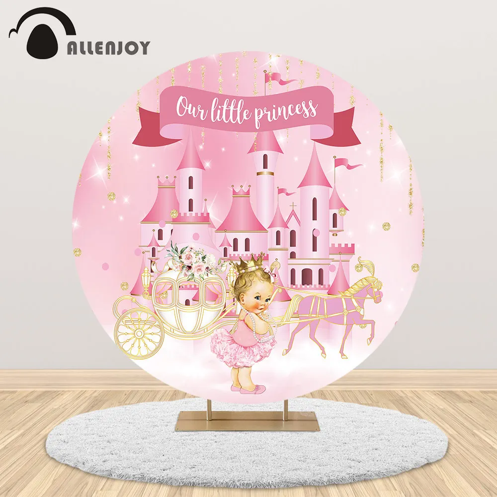 Круглый фон Allenjoy розовый замок принцесса девочка баннер Тыква каретка день рождения ребенок душ Декор Фон Фотофон опора