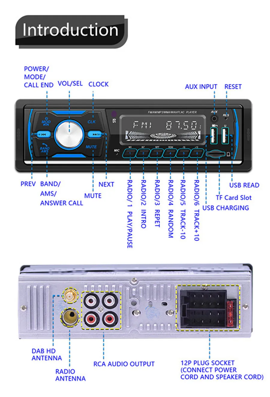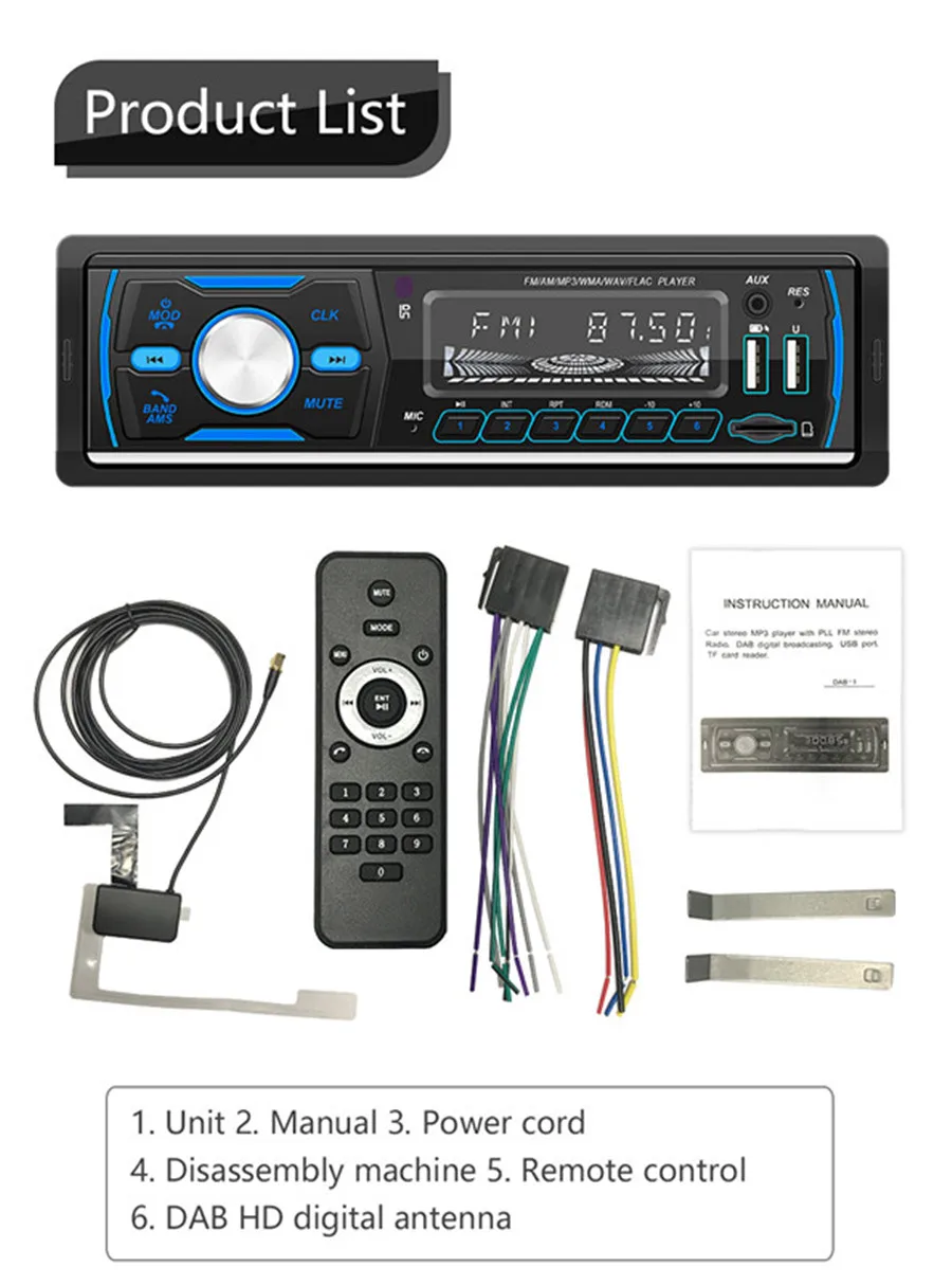 DAB + RDS FM AM Автомагнитола стерео аудио mp3-плеер Авторадио 1 Din Поддержка USB TF Bluetooth