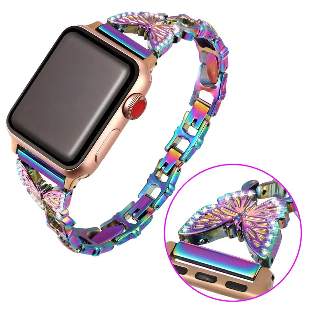 Ремешок металлический женский из нержавеющей стали, браслет с алмазной бабочкой для Apple watch band 40 мм 38 мм 42 мм 44 мм iwatch series 543