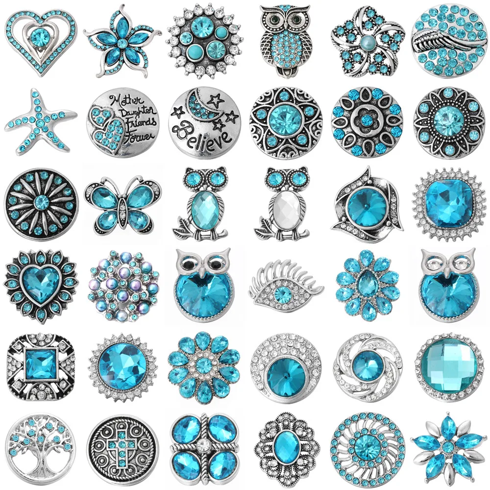 5 шт.лот, ювелирные изделия с кнопками, небесно-голубые стразы, Сова, крест, бабочка, цветок, кнопки, подходят для 18 мм, Snaps, ювелирные изделия, браслеты