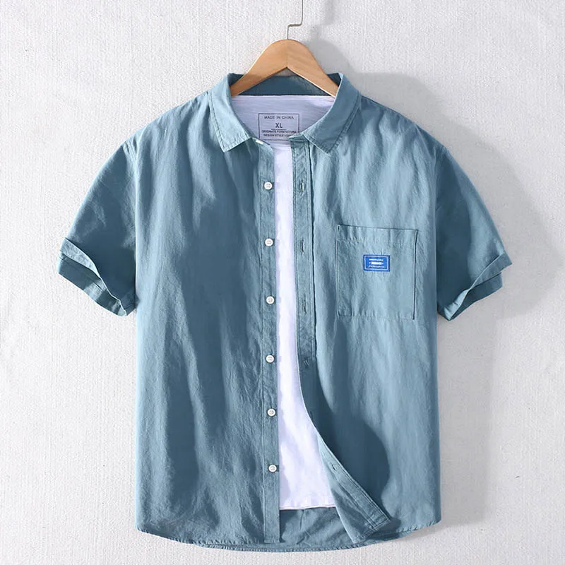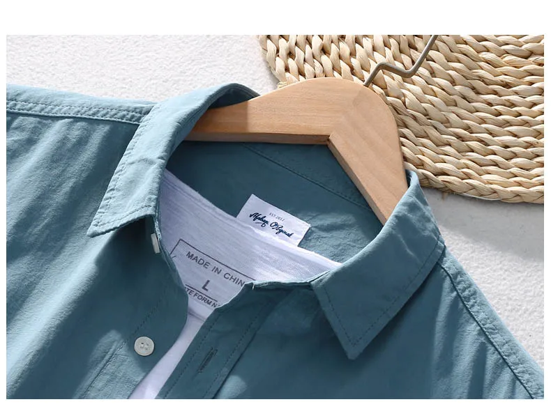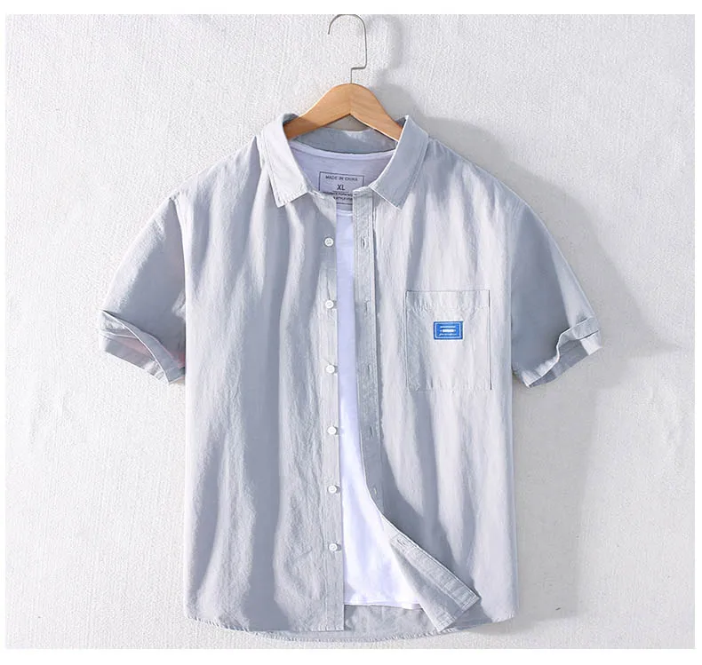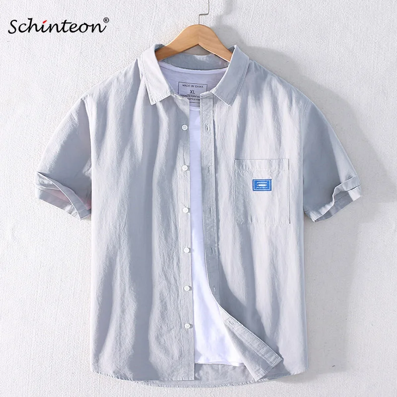Рубашка Schinteon мужская с короткими рукавами, Тонкая Повседневная блуза из 100% чистого хлопка в японском стиле, с отложным воротником, лето