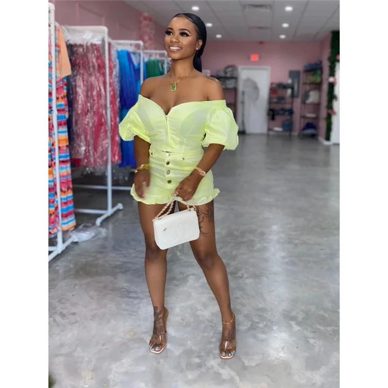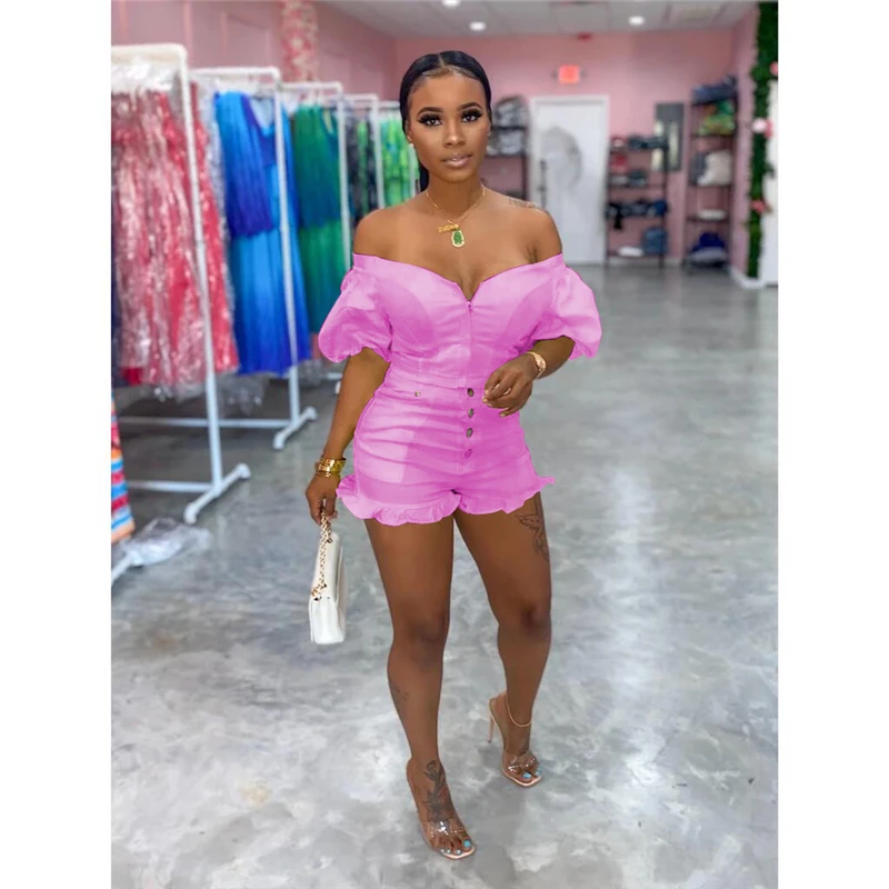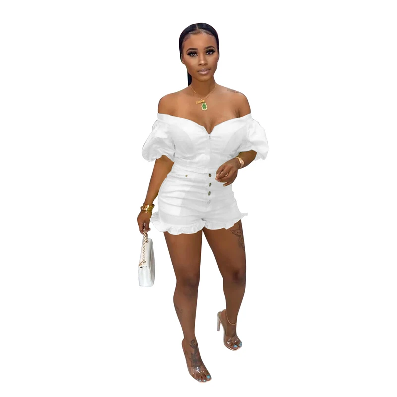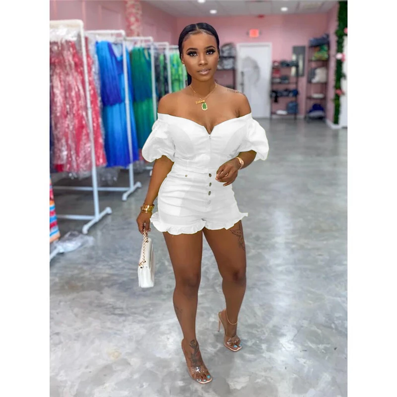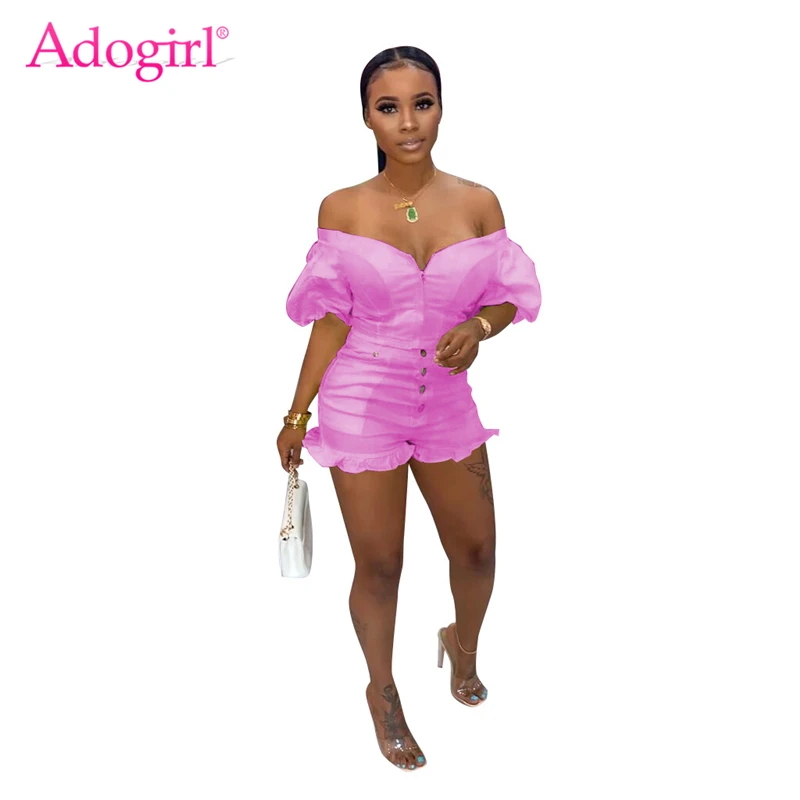 Комплект из двух предметов Adogirl для женщин, короткий топ на молнии с открытыми плечами и рукавами-фонариками, шорты с оборками, летний повседневный костюм, модная одежда