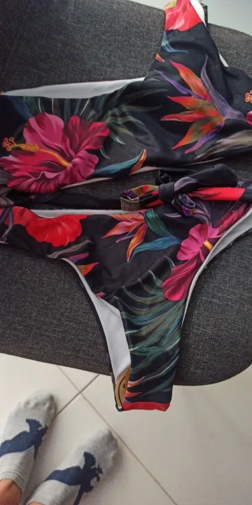 Заказ пришел за 18 дней. Ткань не плохая, брала размер М . Немного маловат разрез под мышкой. Отлично смотрится на девочках, у которых хорошая грудь,у меня грудь маленькая, верх сидит не очень, трусики подошли хорошо