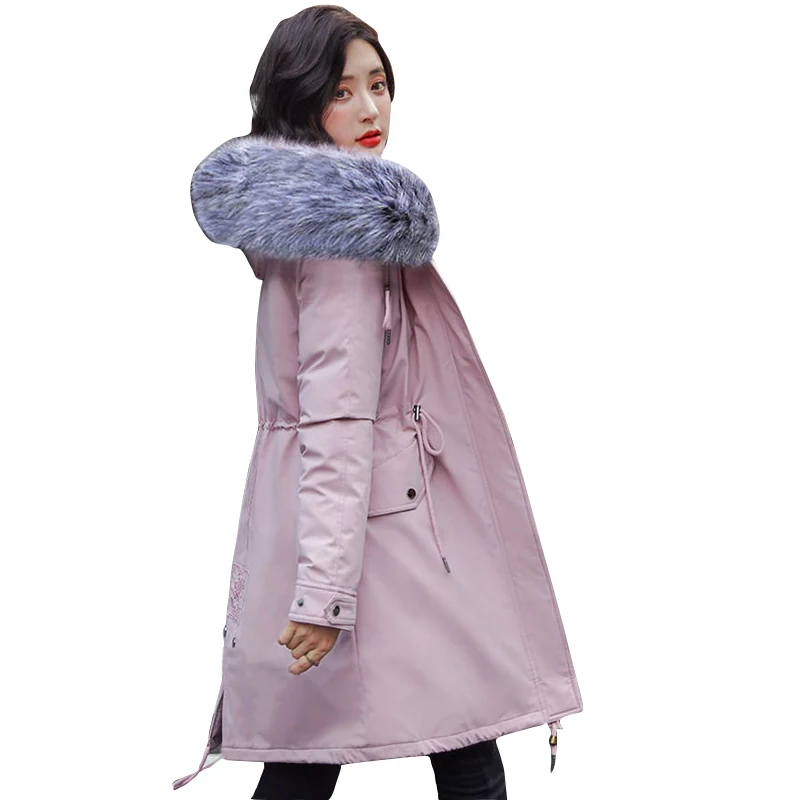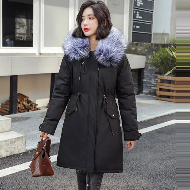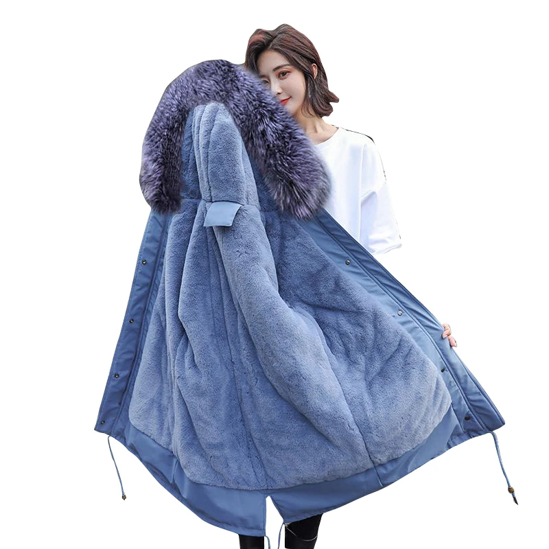 Женское пальто с искусственным мехом, зимняя парка с подкладкой, длинная теплая пуховая куртка, 2020