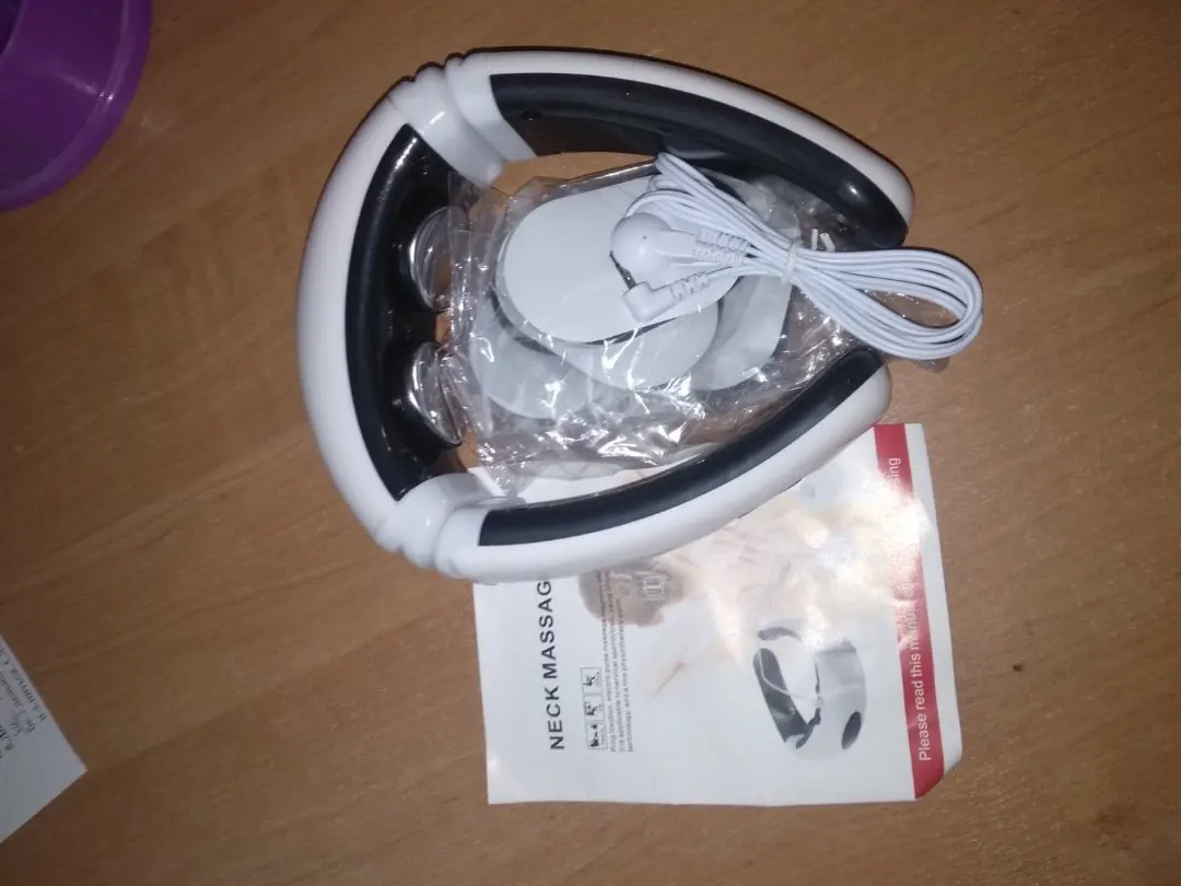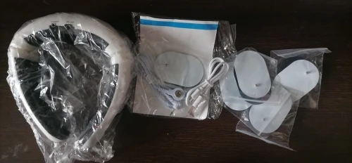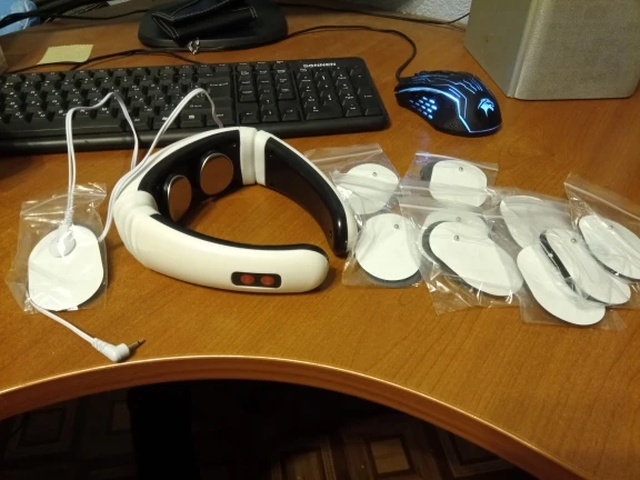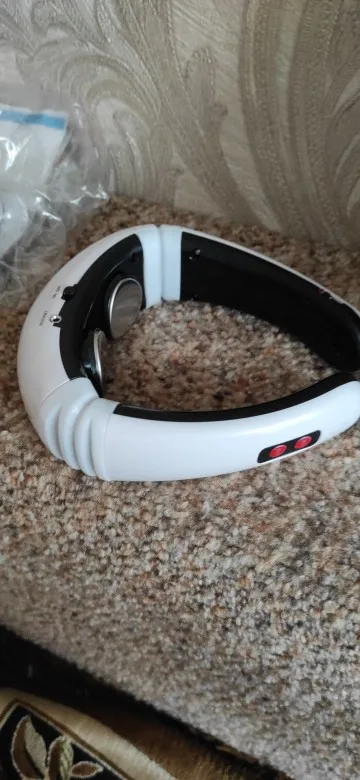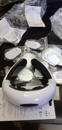Хороший импульсный массажёр для шеи, прилегает плотно!!!Работают все режимы,можно регулировать интенсивность массажа.Доставка 2 недели!!!До этого покупал тапки импульсные и липучки для тела.Только для шеи не хватало...