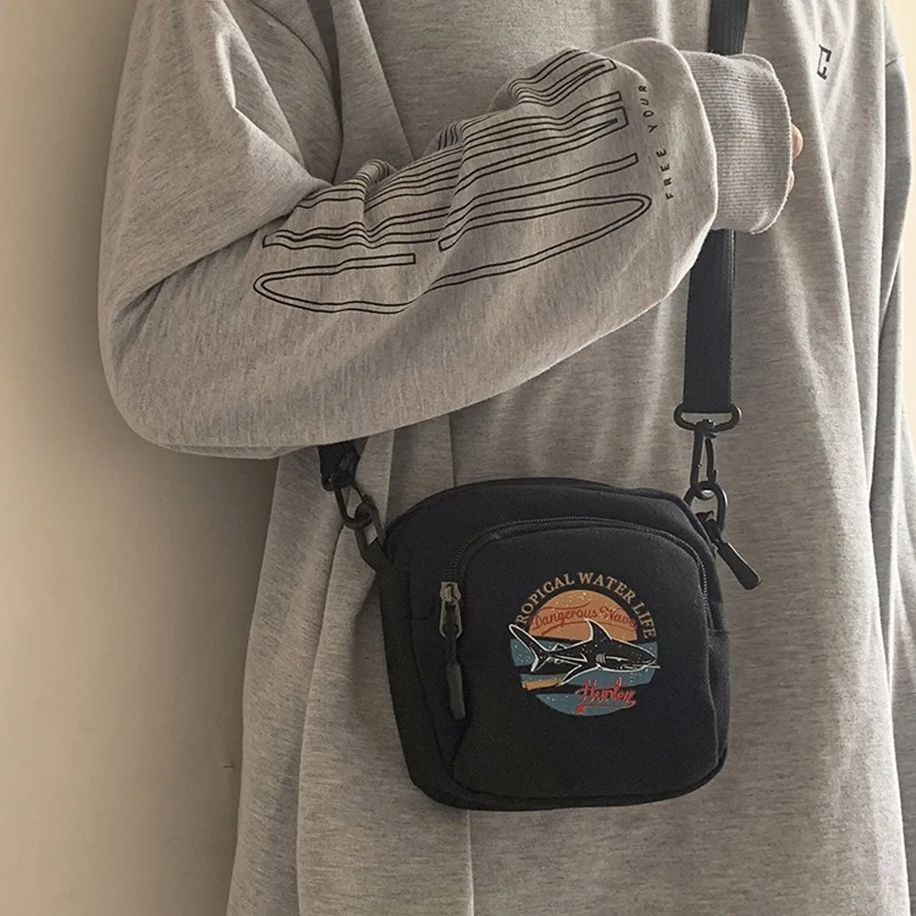 Модная женская Холщовая Сумка с принтом рыбы, повседневная женская сумка через плечо, мини-сумка через плечо