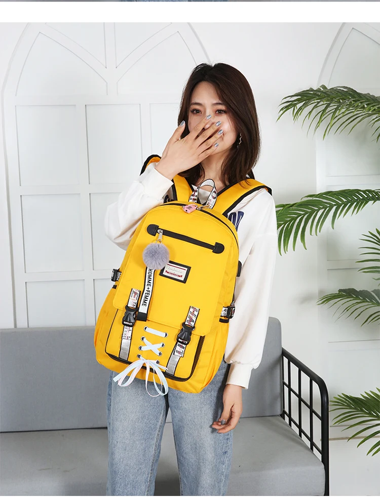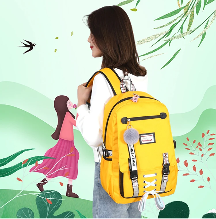 Женский рюкзак для ноутбука, желтые школьные сумки для девочек-подр...