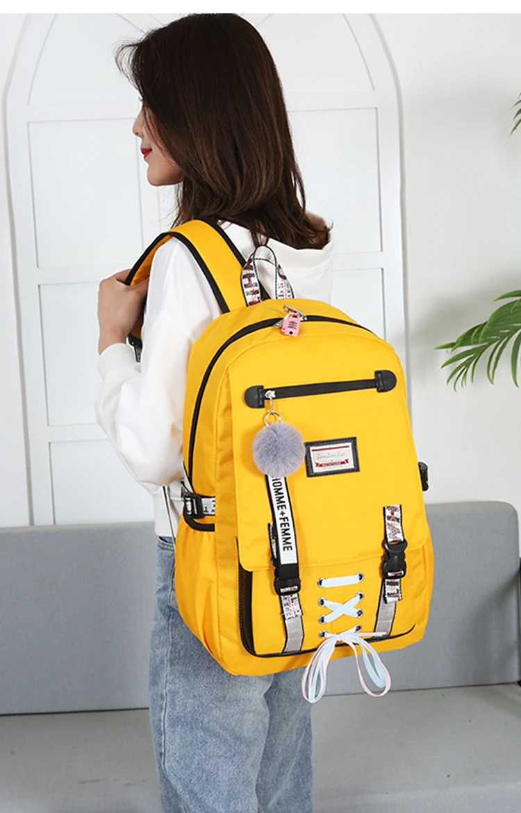 Модный женский рюкзак для книг с USB-зарядкой, милый школьный ранец...