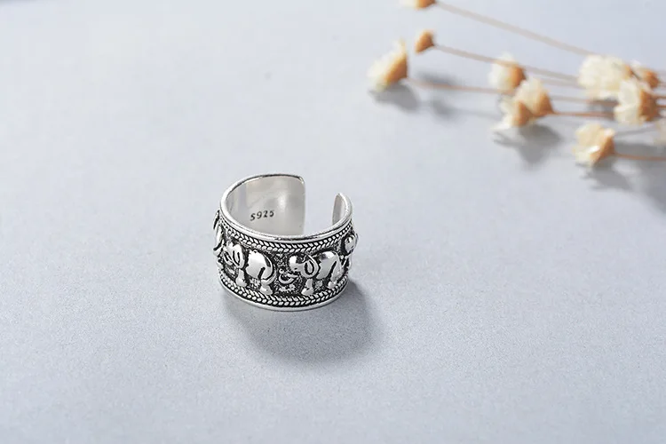 Кольца женские из тайского серебра 925 пробы, регулируемые, в виде слона
